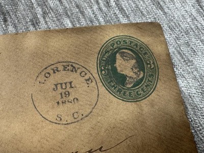 Date/Postmark: FLORENCE, S.C., JUL 19, 1880 circular date stamp
