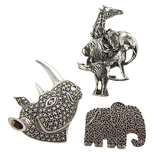 Three 3 Animaux de safari marcasite Silver 925 Animaux, elephant, broches rhinoceros