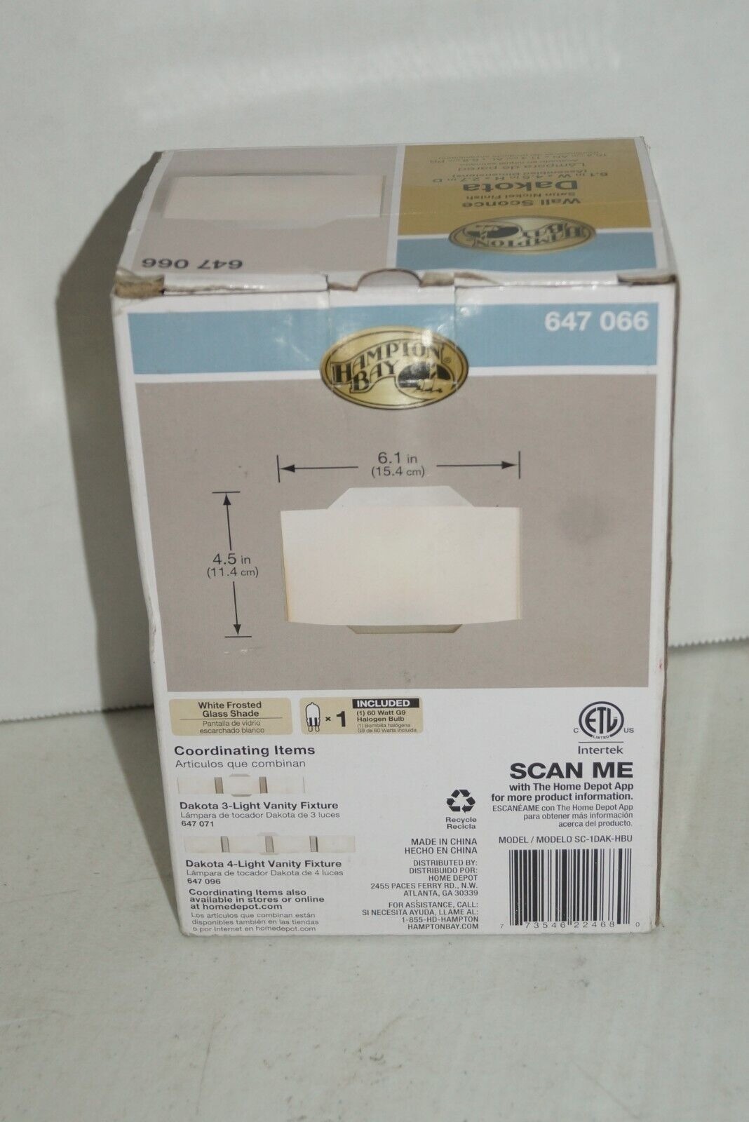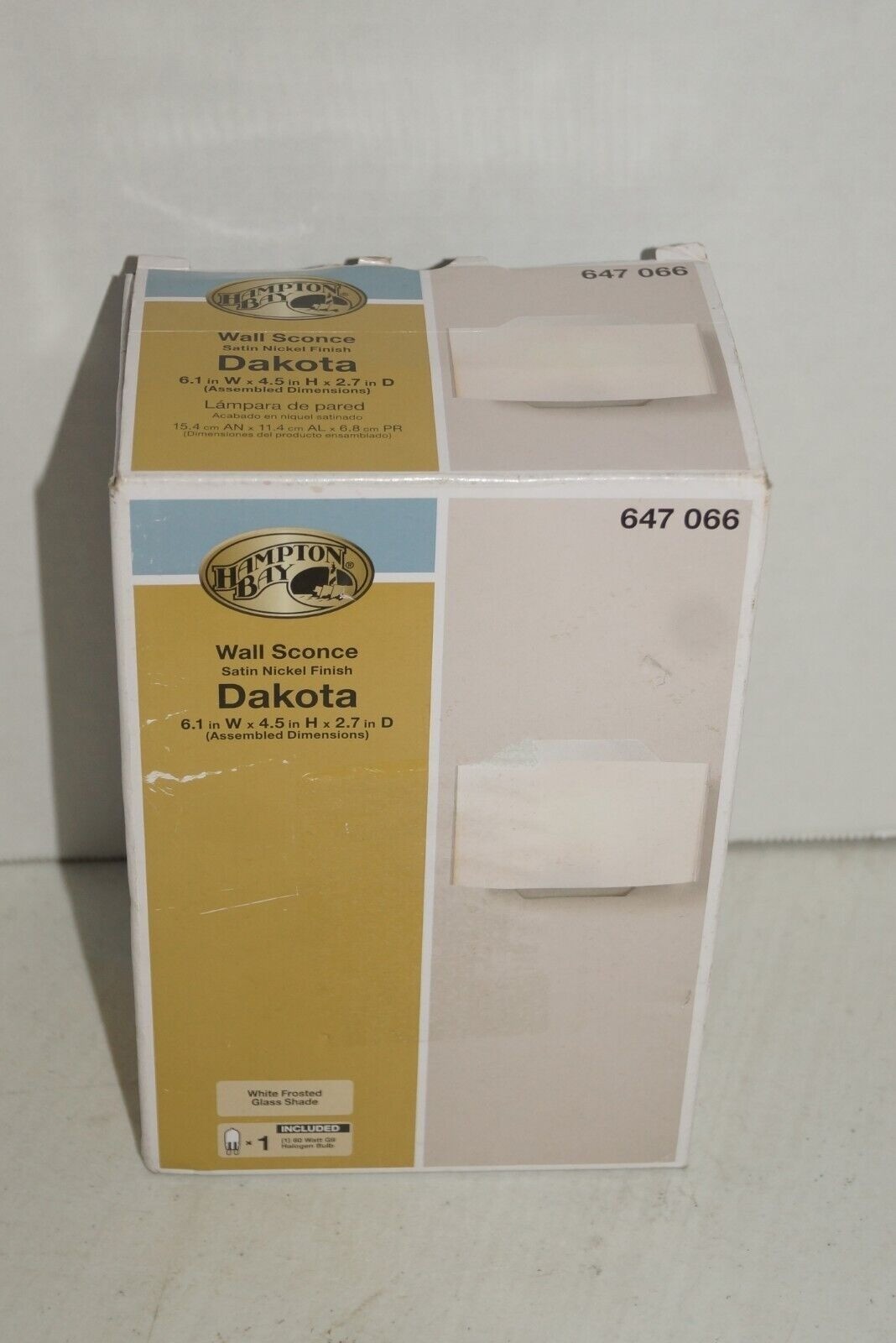 Hampton Bay Dakota Wall Sconce Satin Nickel Finish White Frosted Glass Shade