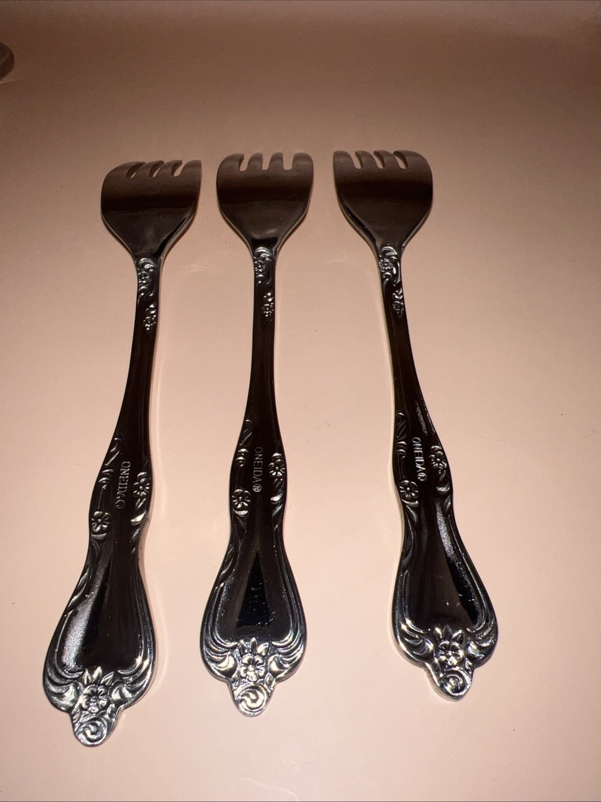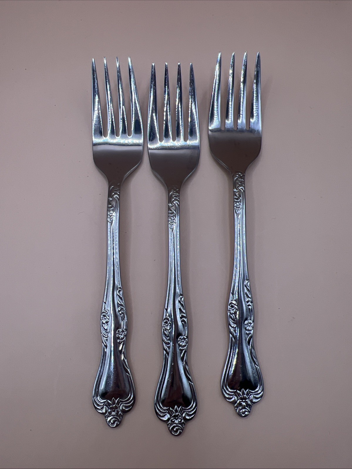 Oneida AZALEA Stainless 3 Salad Forks Glossy Floral Tip & Heel Flatware