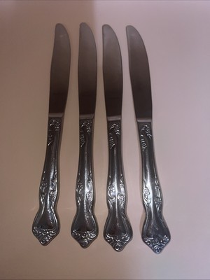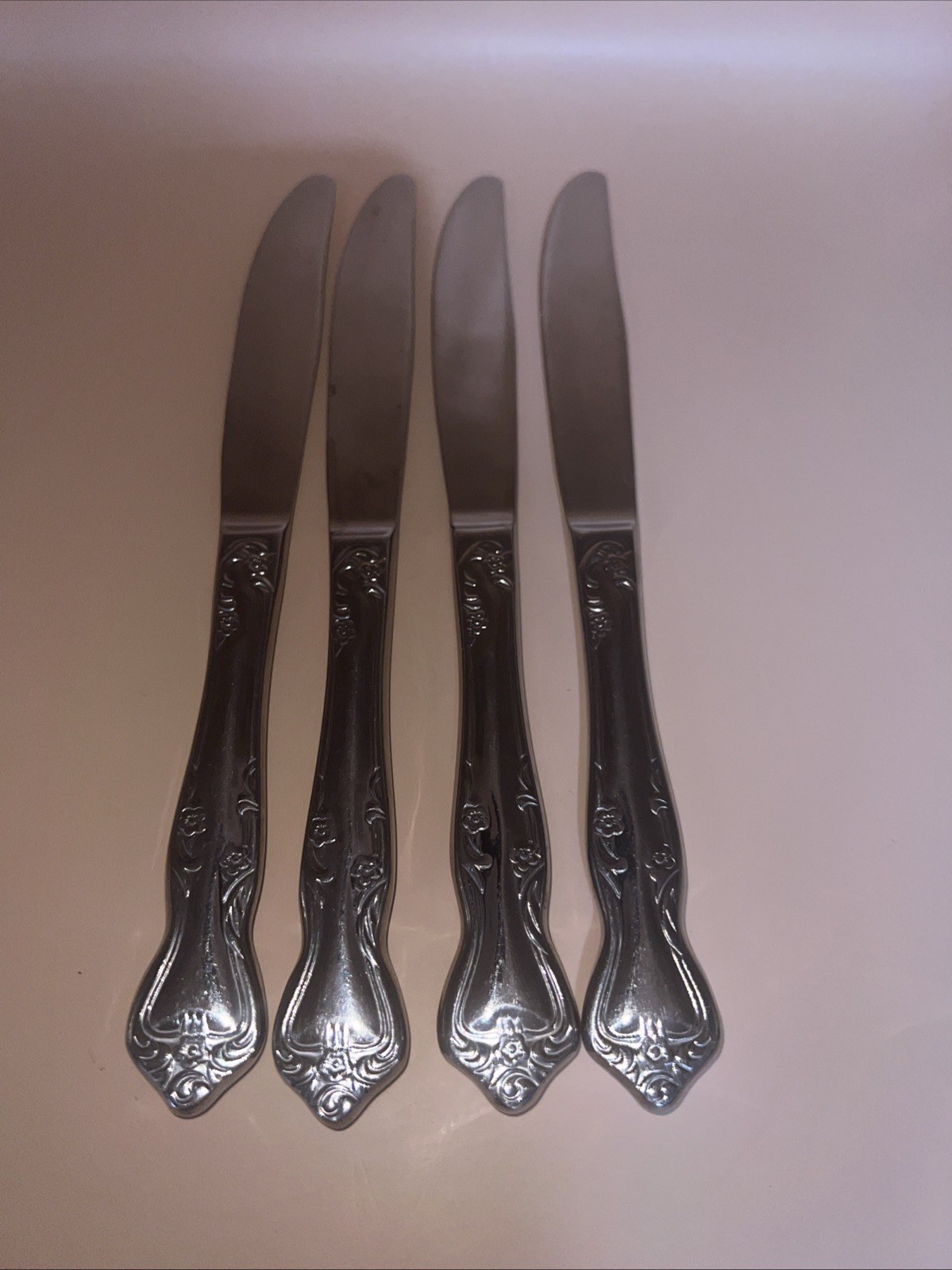 Oneida AZALEA Stainless Floral Glossy Dinner Knives Solid Handle 9.25” Set Of 4
