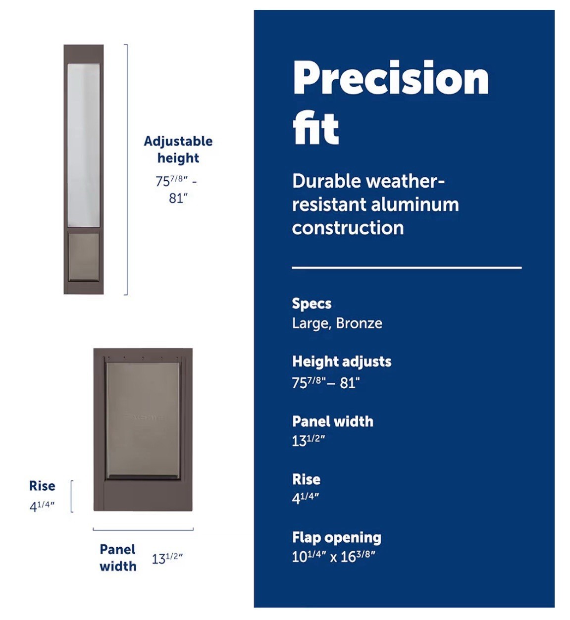 Search Keywords: PetSafe patio door insert, sliding glass dog door, no cut dog door, large pet door, bronze pet door panel, patio panel pet door