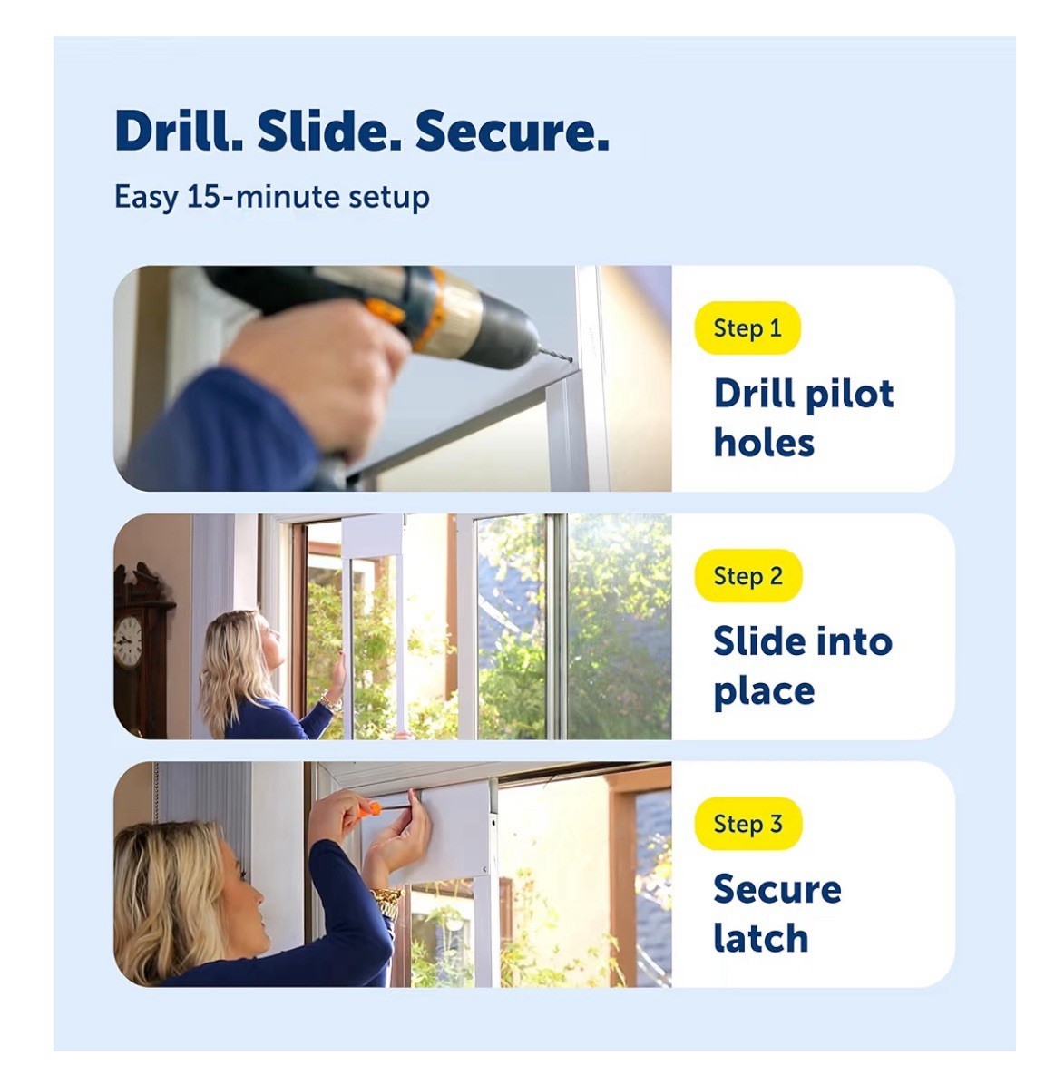 Simply fit the panel into your existing sliding glass door track for a secure, weather-resistant pet access solution.