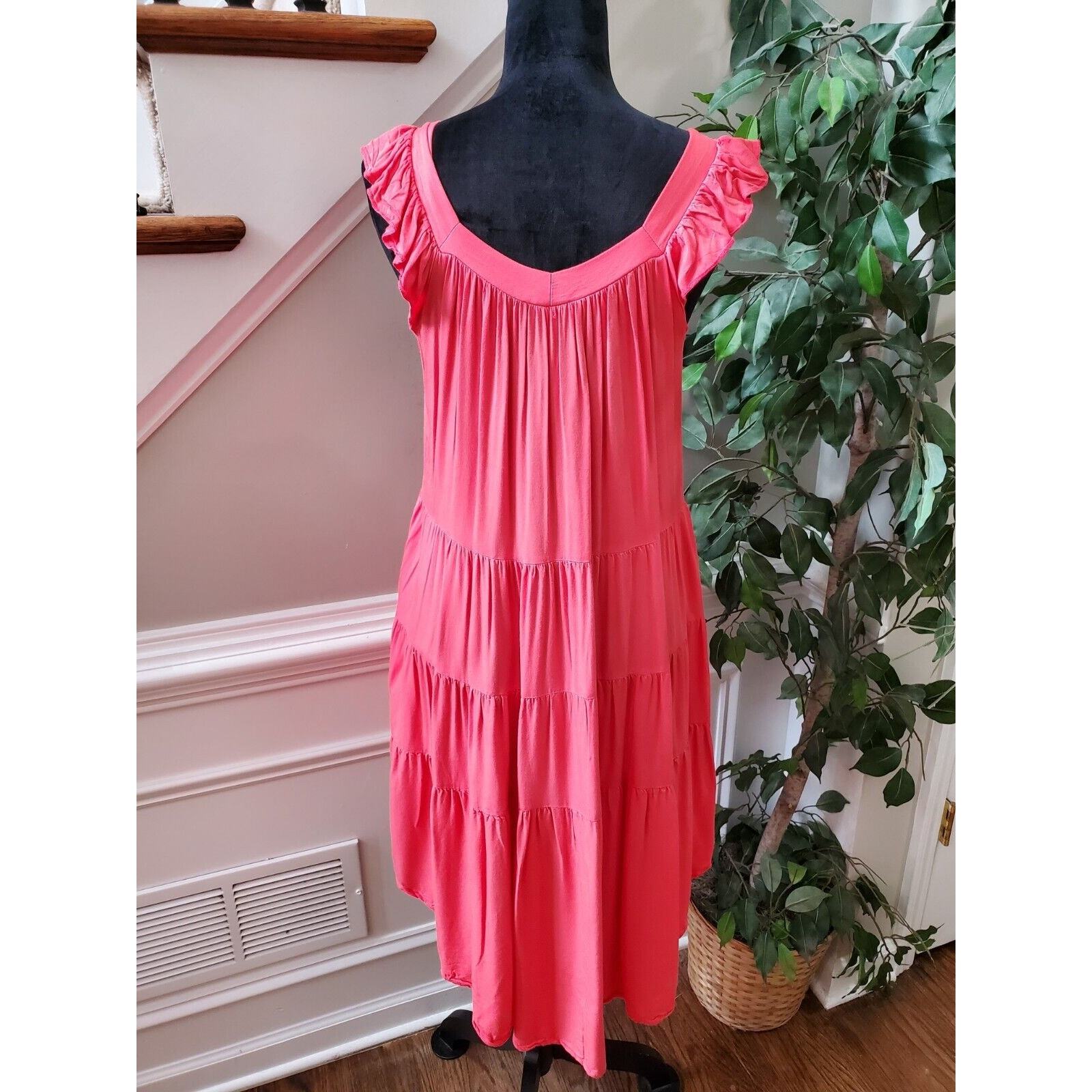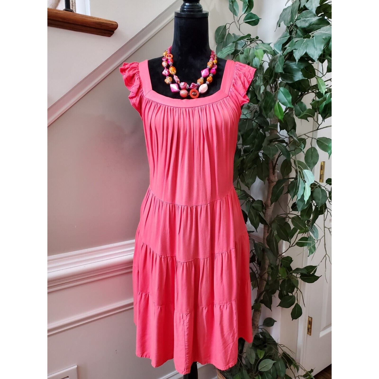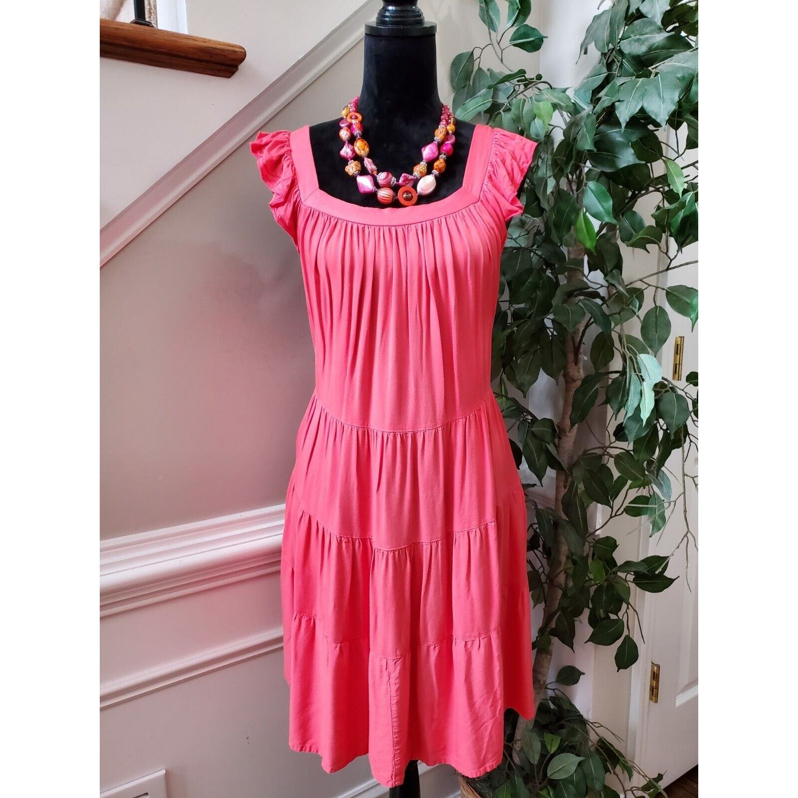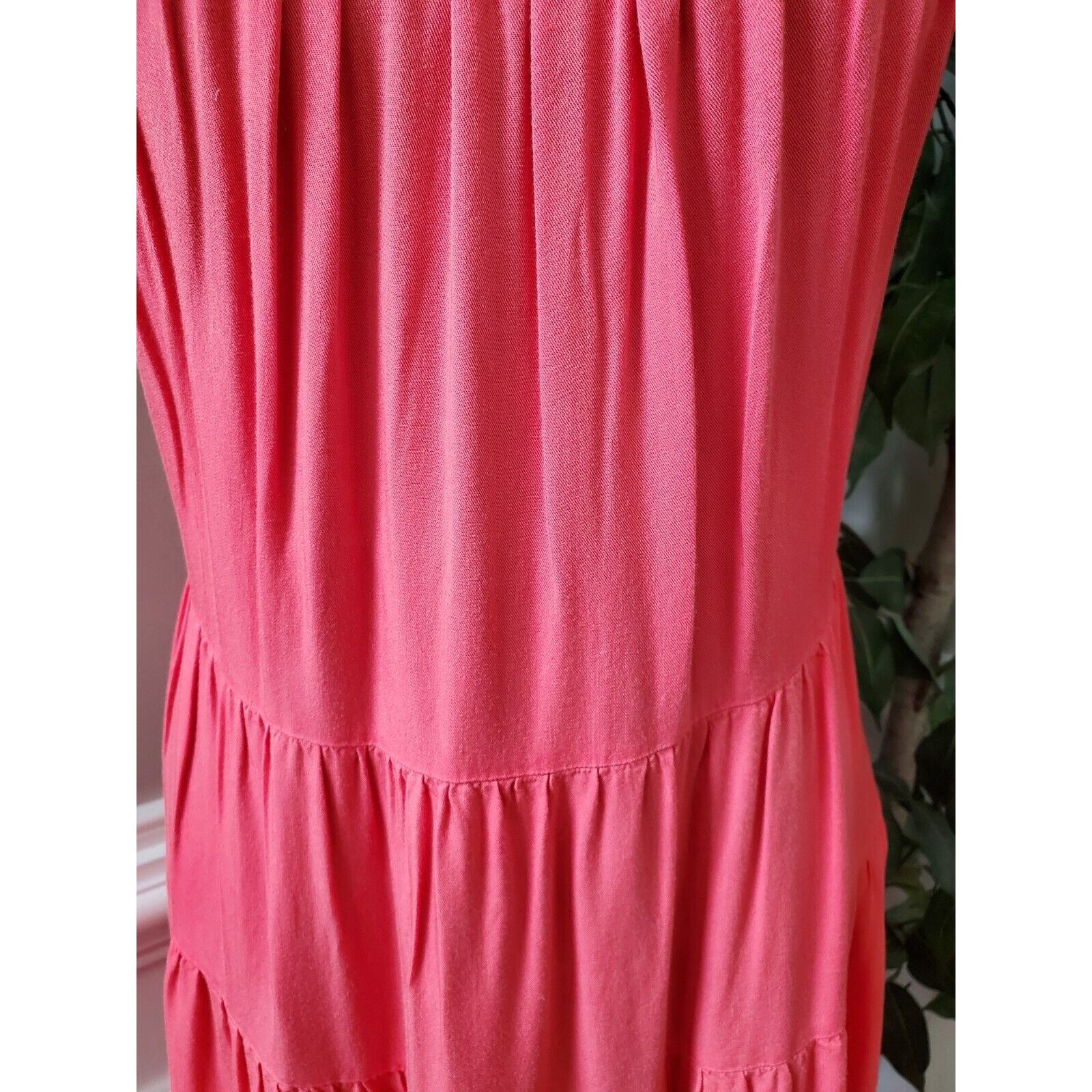 Kirundo Women Solid Pink Viscose Square Neck Sleeveless Knee Length Dress Size M
