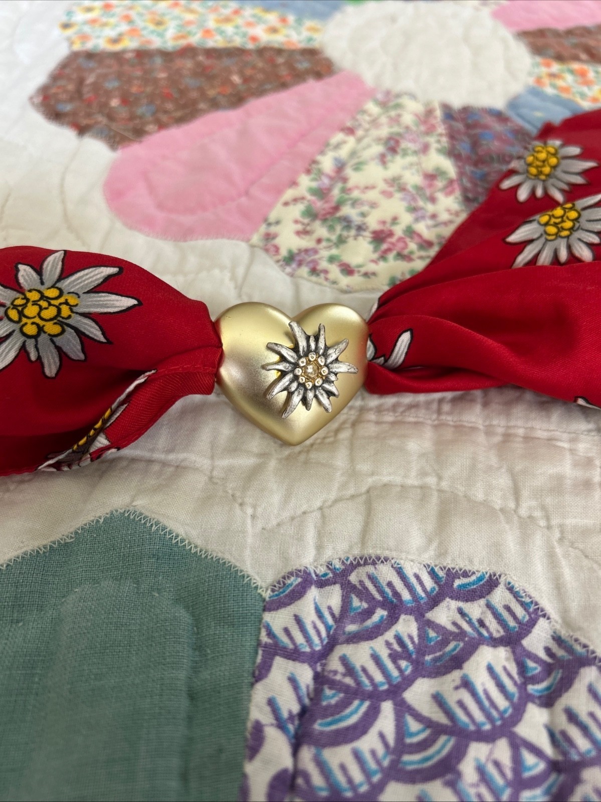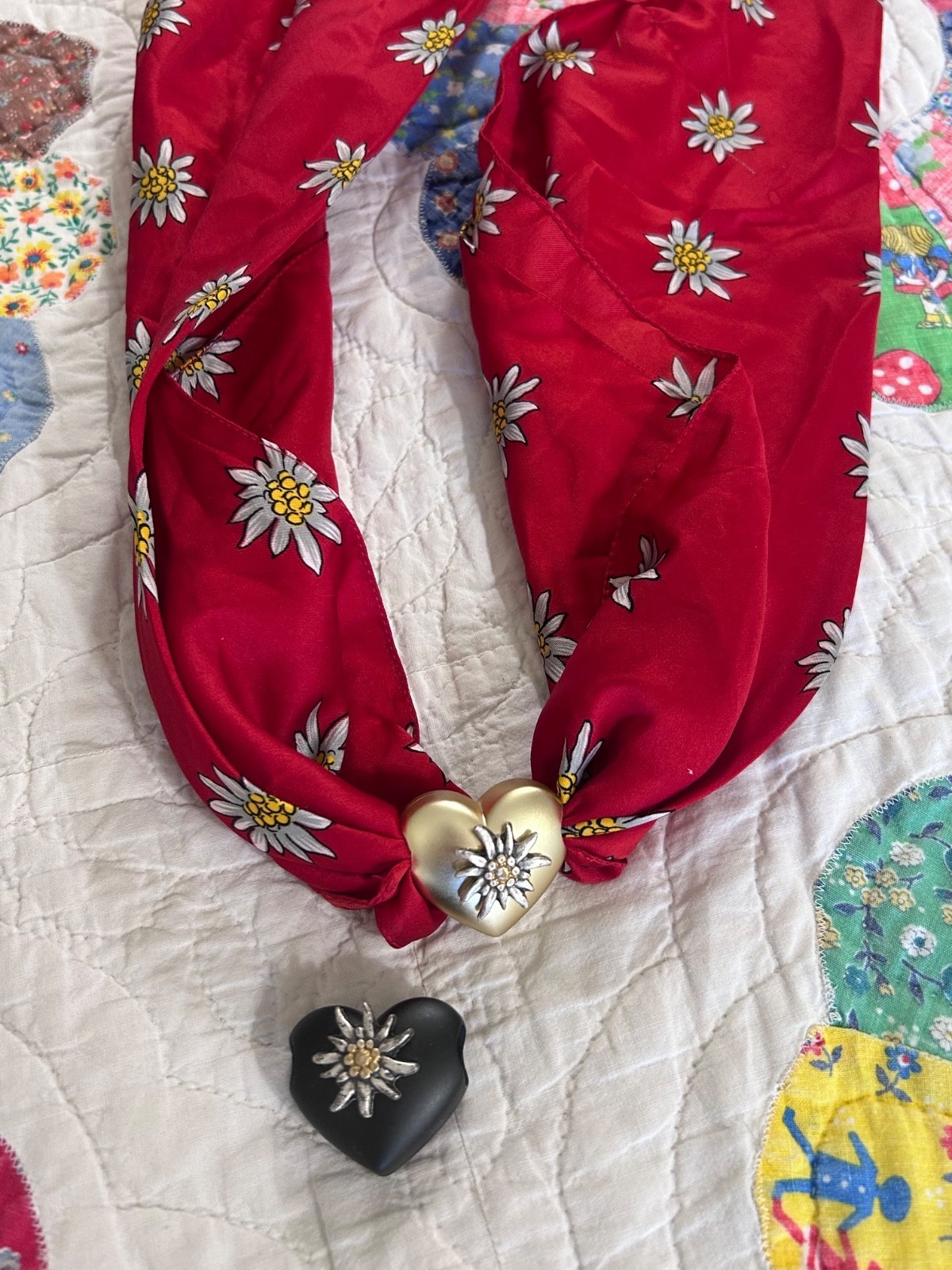 vintage floral Italian polyester floral scarf 2 puffy heart scarf slides