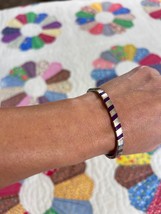 Taxco Mexico 925 Sterling Silver Hinged Bracelet with purple stone inlay. Significant patina, see photos