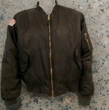USAF MA1 Flight Jacket Men L Black Orange Reversible Flag Patch Vintage Bomber added to cart.