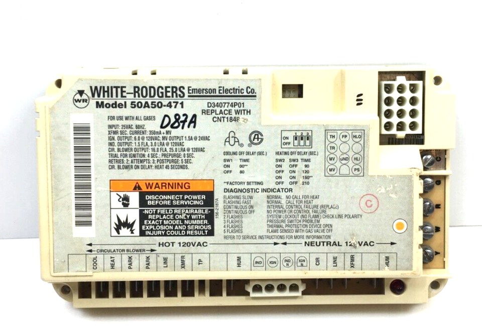 This is White Rodgers 50A50-471 Furnace Fan Control Circuit Board D340774P01 used