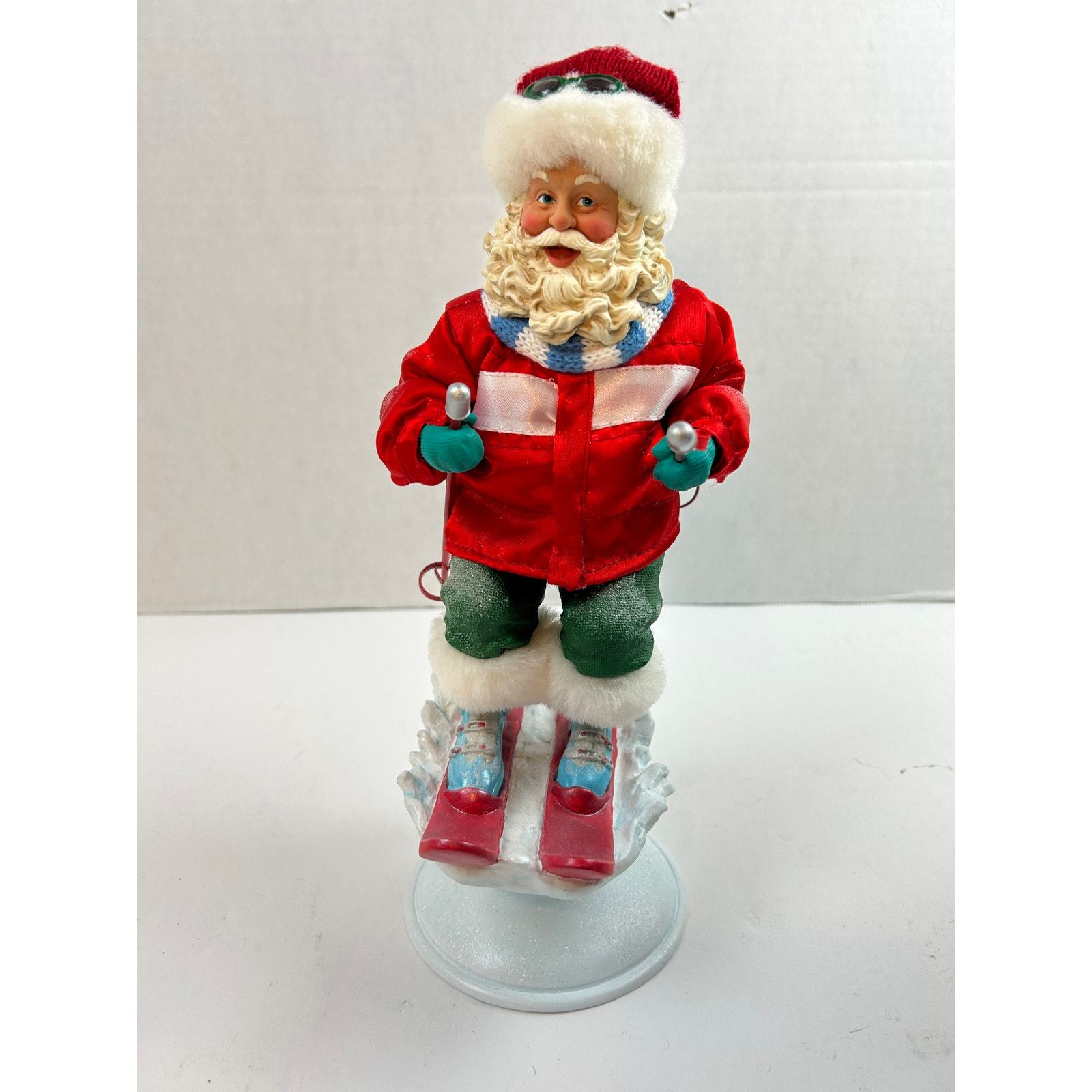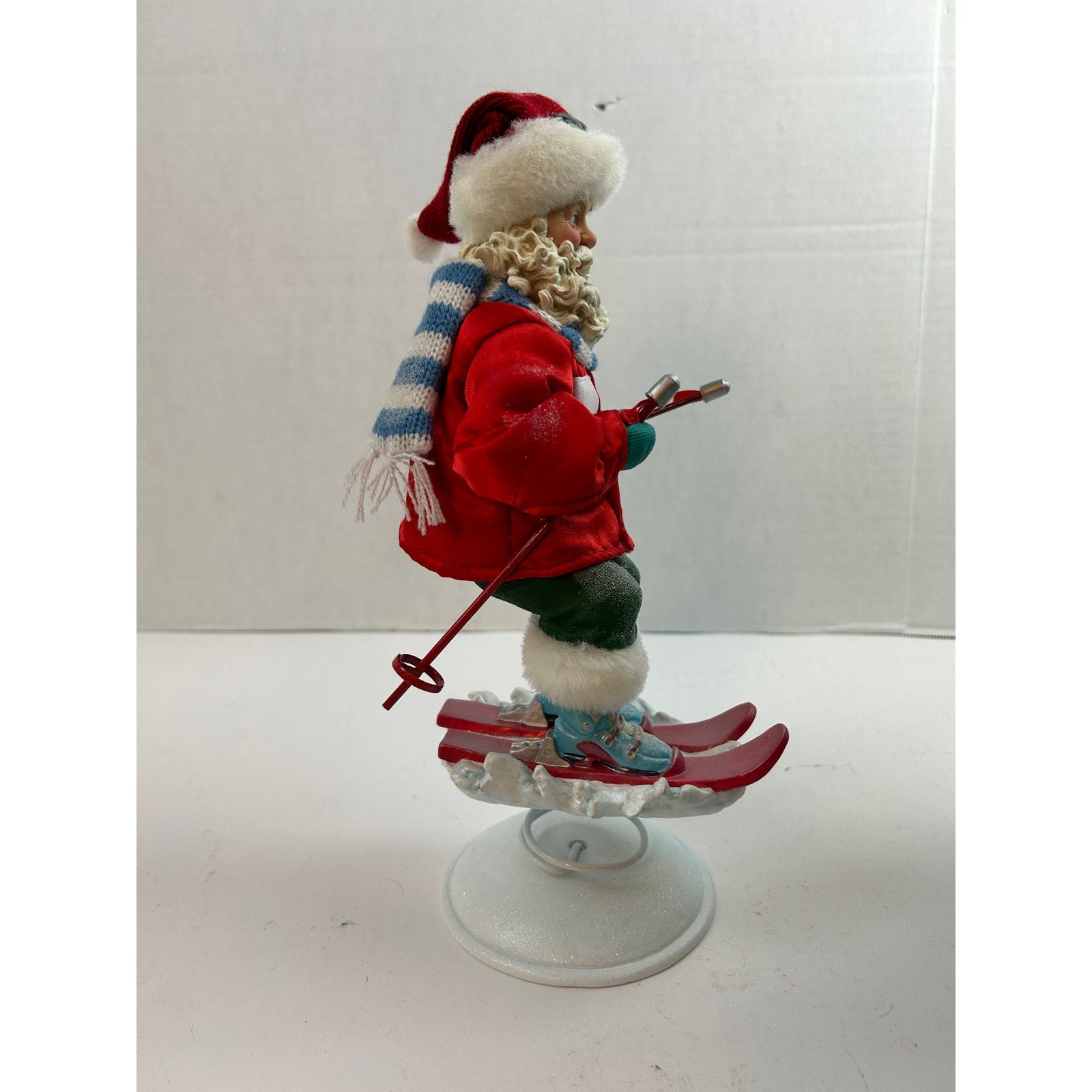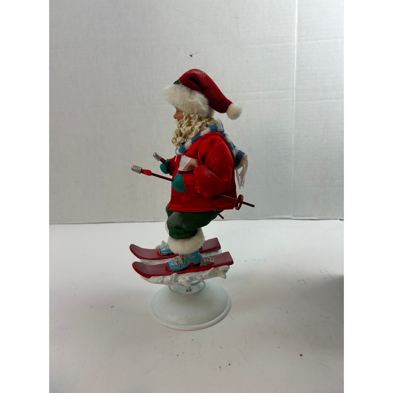 Add nostalgic alpine charm to your holiday decor with this vintage Fabriche ?Powder Hound? Skiing Santa by KSA Collectibles. Produced around 1999?2000, this hand-painted 12-inch figurine features Santa in full ski gear on a spring-mounted snow base, complete with box and hang tag. A perfect addition to any Christmas collection and now over 20 years old, making it Etsy-eligible.