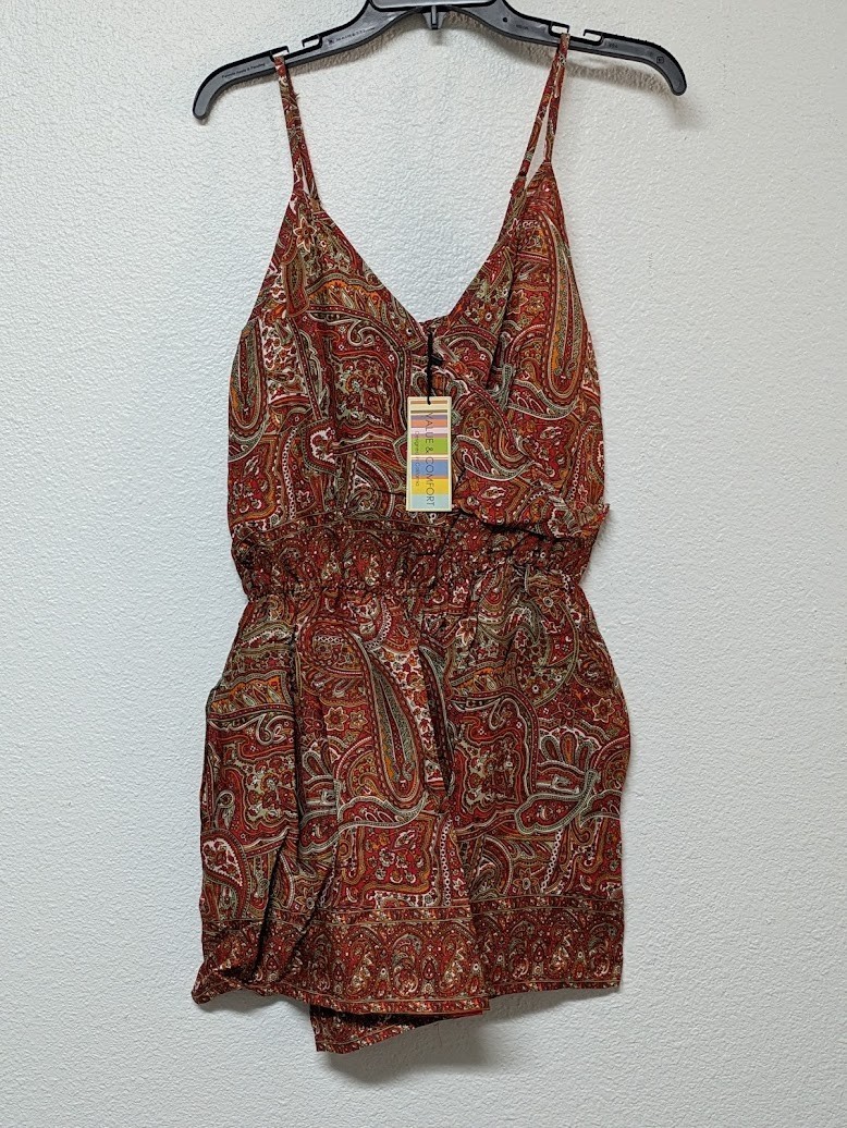 Young USA Red Paisley Women's Small Summer Rompers Sleeveless Spaghetti Strap