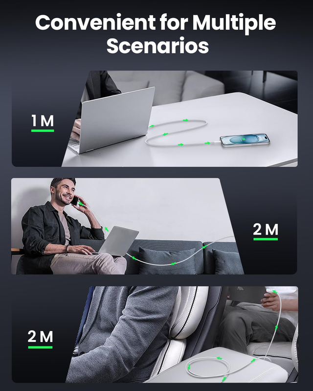 3Pack [6.6ft+6.6ft+3.3ft] Dual 67W USB-C1/USB-C2 output Dual 100W USB-C1/USB-C2 output Dual 100W USB-C1/USB-C2 output PD 20W for iPhone 15 Series PD3.1 140W USB-C1 port output 48V/5A (240W Max) output