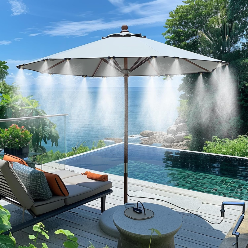 Efficient Cooling: Water mister system creates a mist of fine water droplets, reducing the surrounding temperature by up to 20? or 68?, providing a cool and comfortable outdoor environment. The water mister is also a good helper for outdoor water play, which can be used in trampoline water parks, sun umbrellas, swimming pools, kennel and other outdoor water play places.