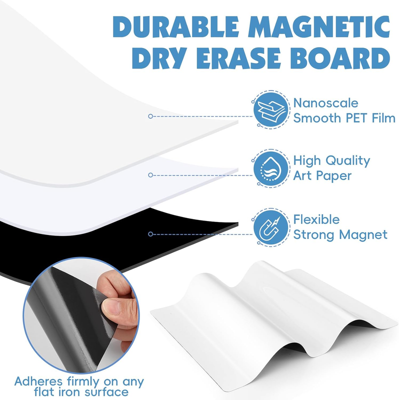 ?Strong Magnet Back?The back of our magnetic dry erase board is full magnetic,They can firmly attract to any surface that magnet can attract to, You can cut them into any shape according to your needs.