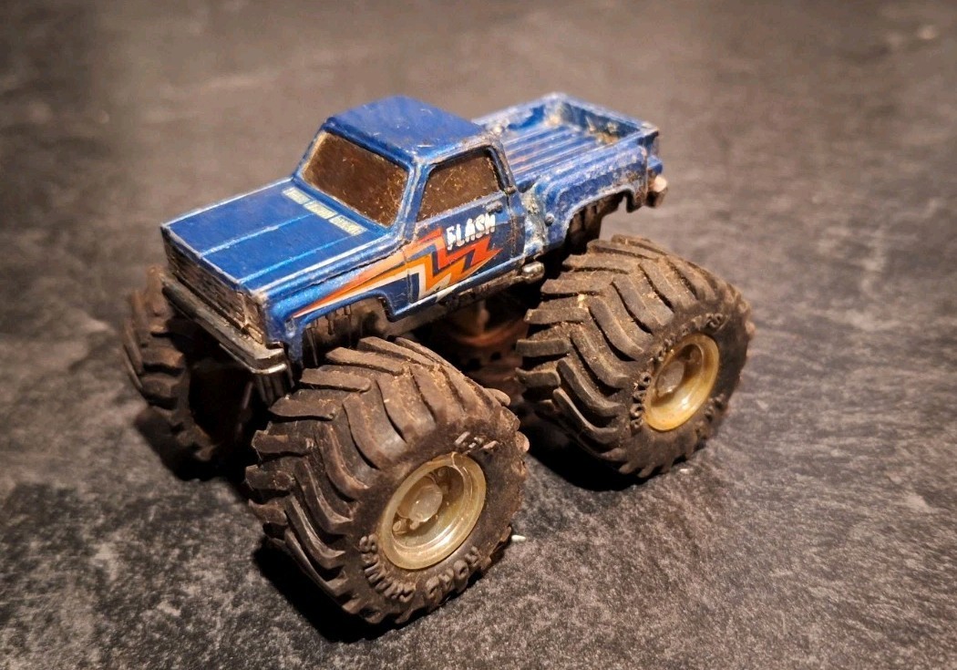 The product is a vintage Road Champs 1980s Flash Chevrolet Step Side Truck in blue diecast. This 1:64 scale pickup truck, modeled after the 1982 Chevrolet, is a special edition featuring the character family of Flash. Made in Hong Kong, this collectible toy vehicle appeals to both boys and girls aged 17 years and up who appreciate vintage diecast models. The Road Champs brand adds a unique touch to this nostalgic piece of toy vehicle history.