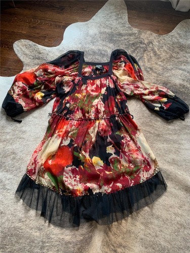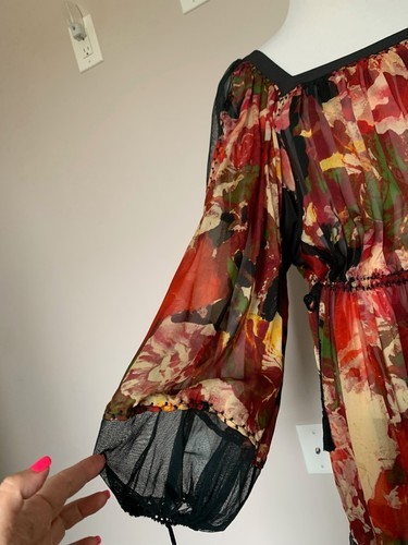 NWOT JEAN PAUL GAULTIER Femme Red Black Multi Silk Chiffon Shift Dress SZ L