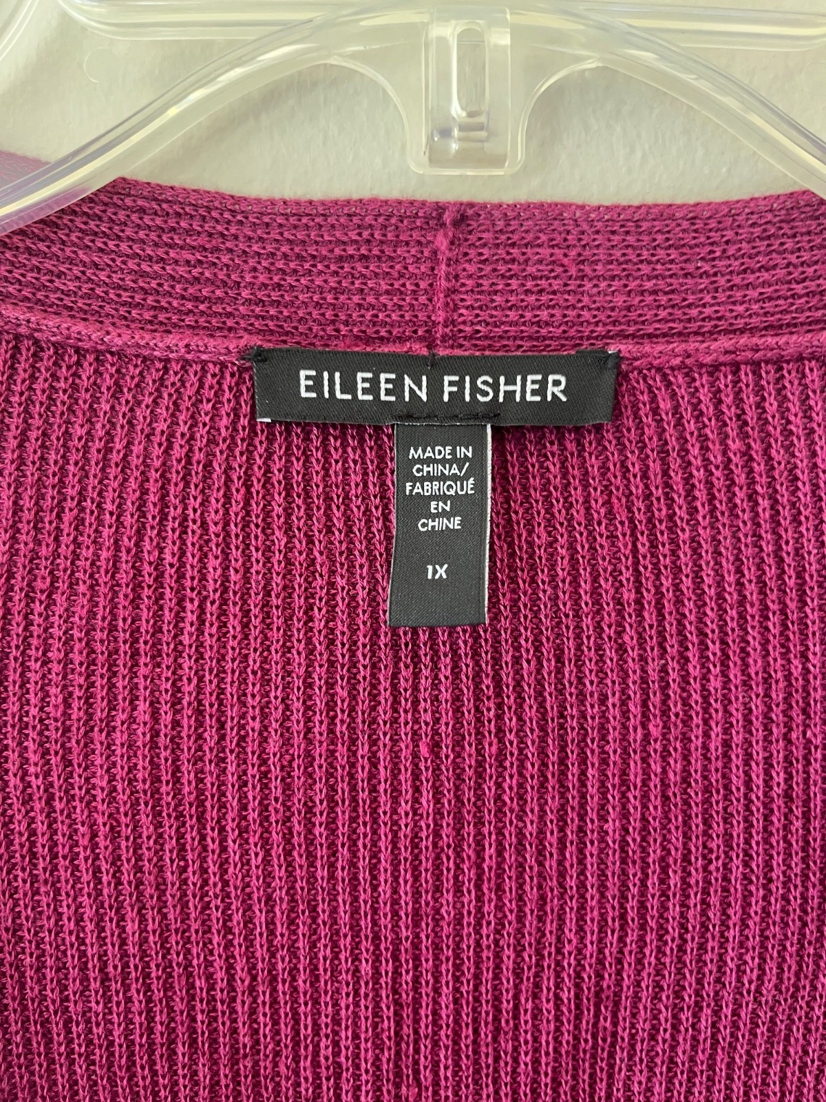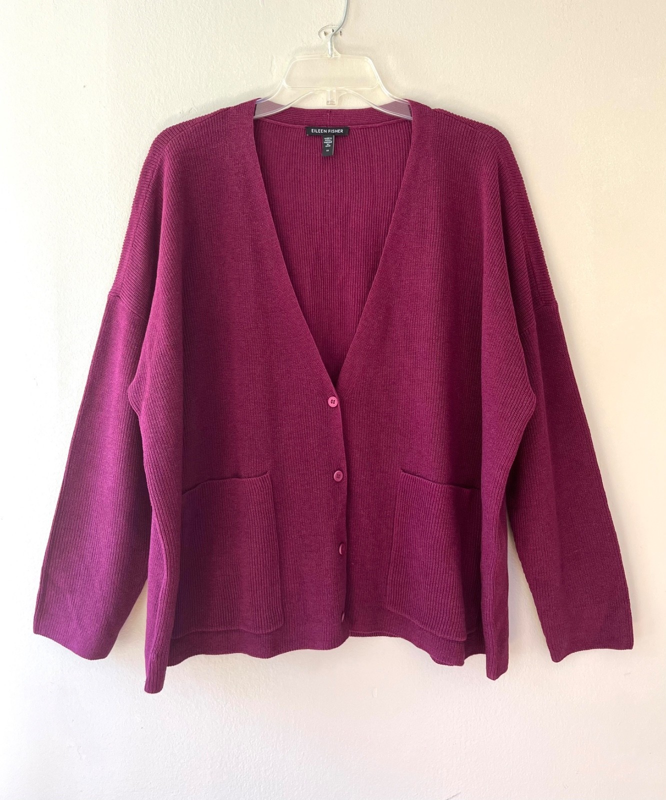 EILEEN FISHER Sz XL Organic Linen Cotton Cardigan Cranberry V Neck Knit Sweater