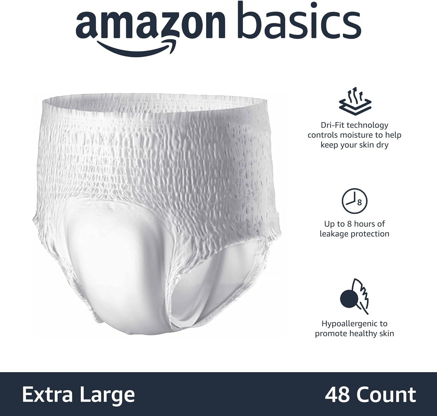 Amazon Basics Incontinence Underwear for Unisex Overnight Absorbency XL 48CT