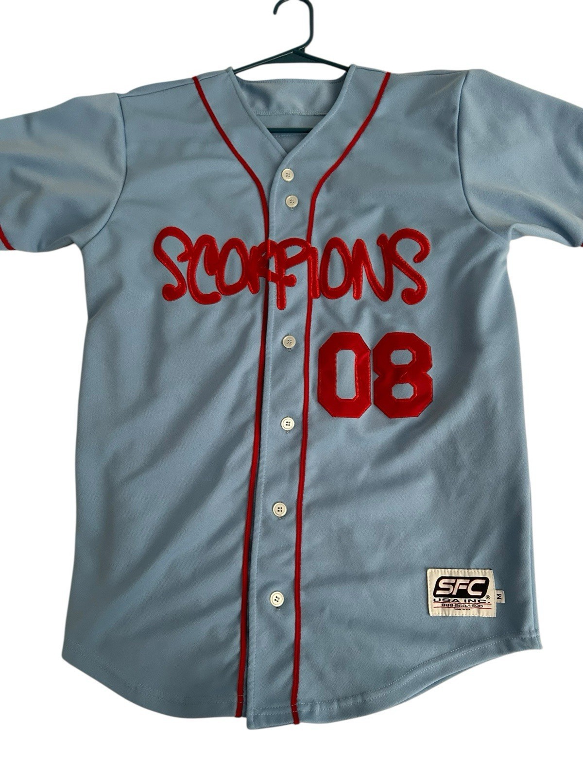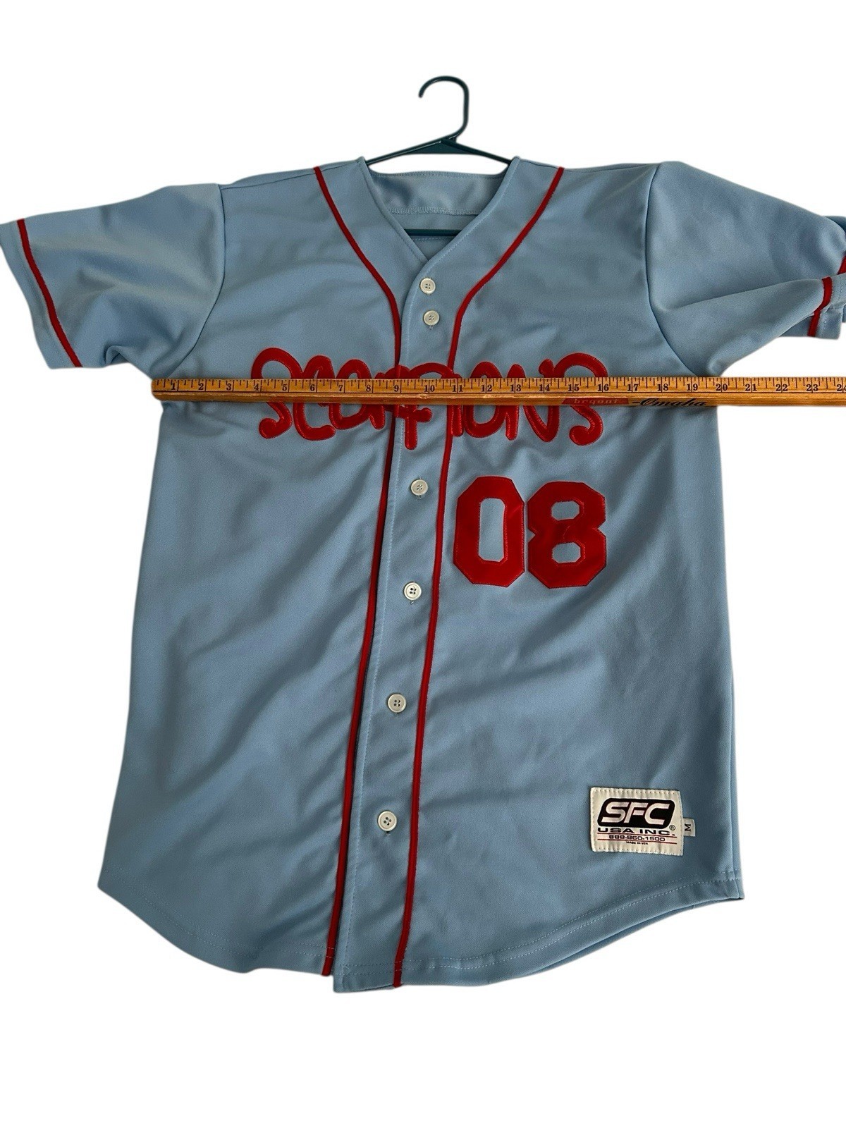 Vintage SFC USA SCORPIONS Baseball Jersey Size Medium Fox 08 Blue/Red