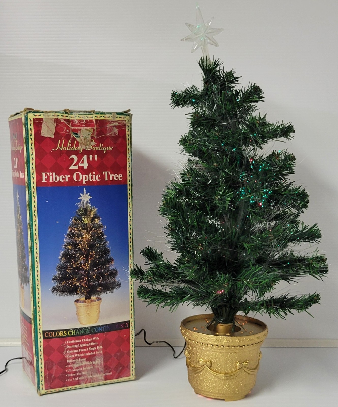 *B4) Vintage Holiday Boutique 24" Fiber Optic Christmas Tree Color Changing added to cart.