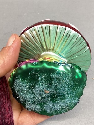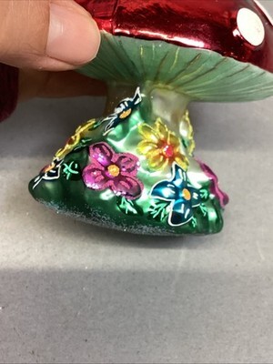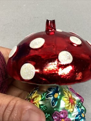 2002 Happy Springtime Glass Mushroom W/ Flowers Ornament- Missing Topper