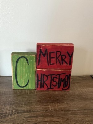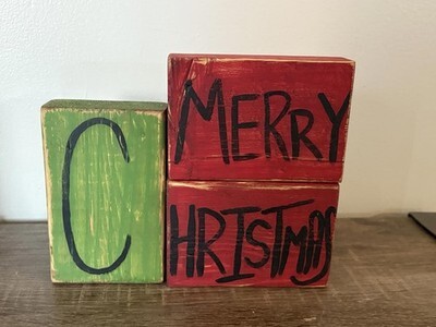 Celebrate the holiday season with this charming set of wooden blocks spelling out "Merry Christmas." Crafted by Savvy Creations, these blocks feature a rustic, distressed finish in traditional red and green colors.