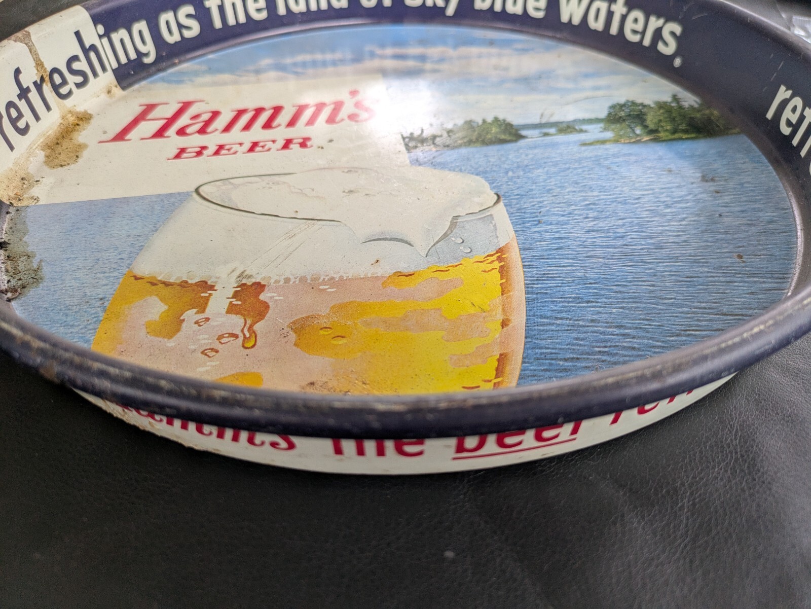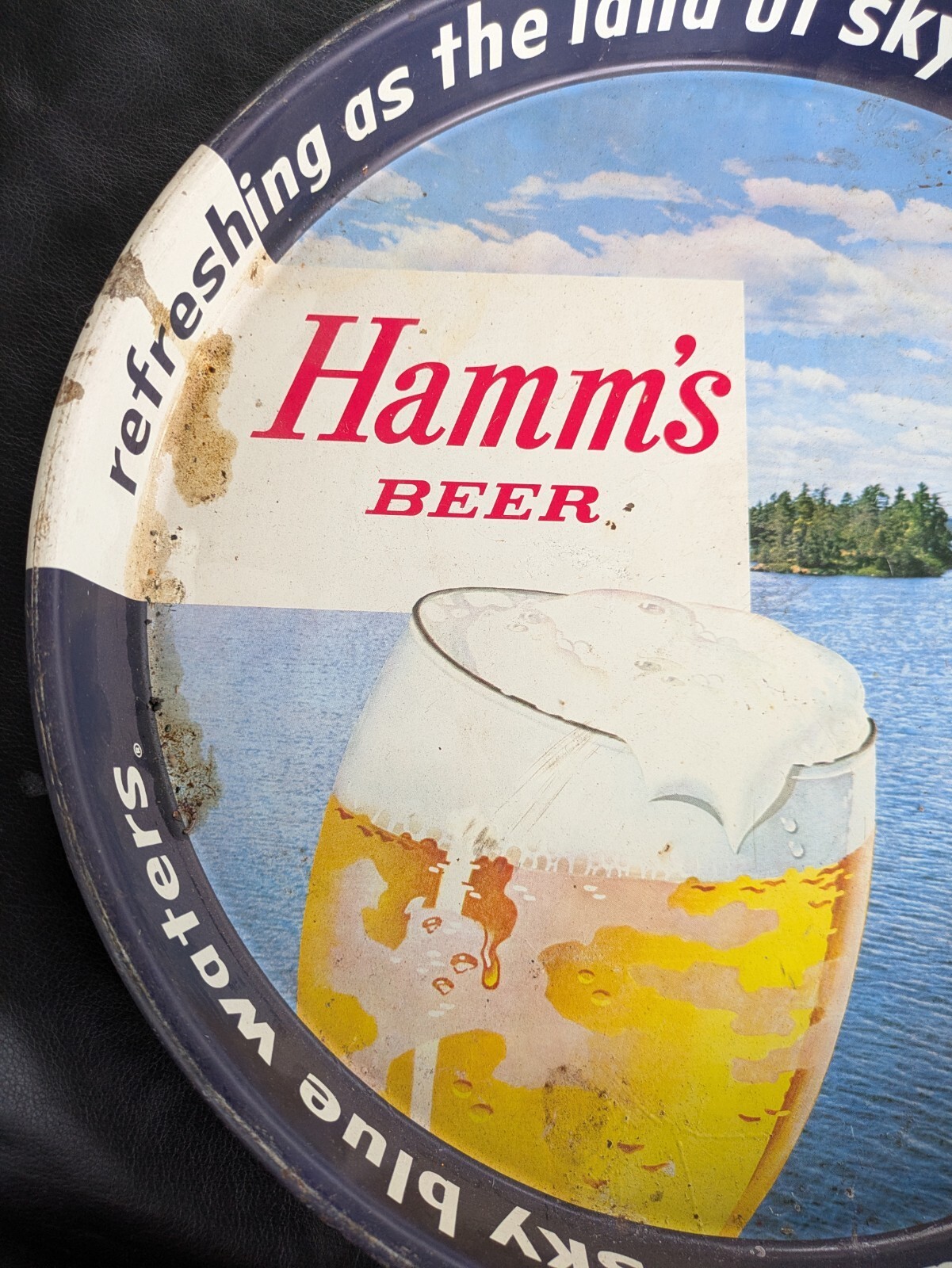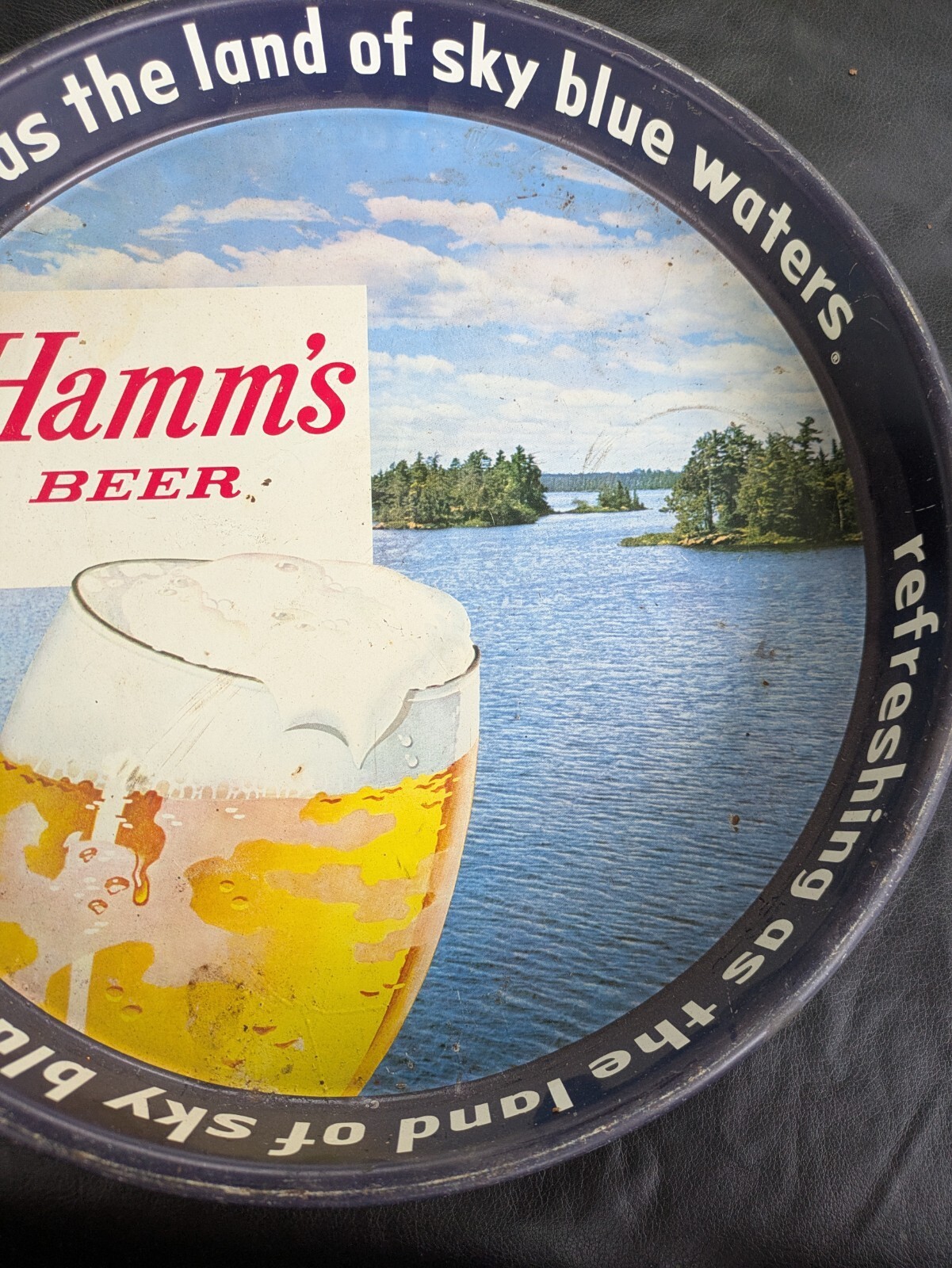 Hamm's Birra Metallo Servire Vassoio Rinfrescante Come Terra Blu Sky Lago Scene