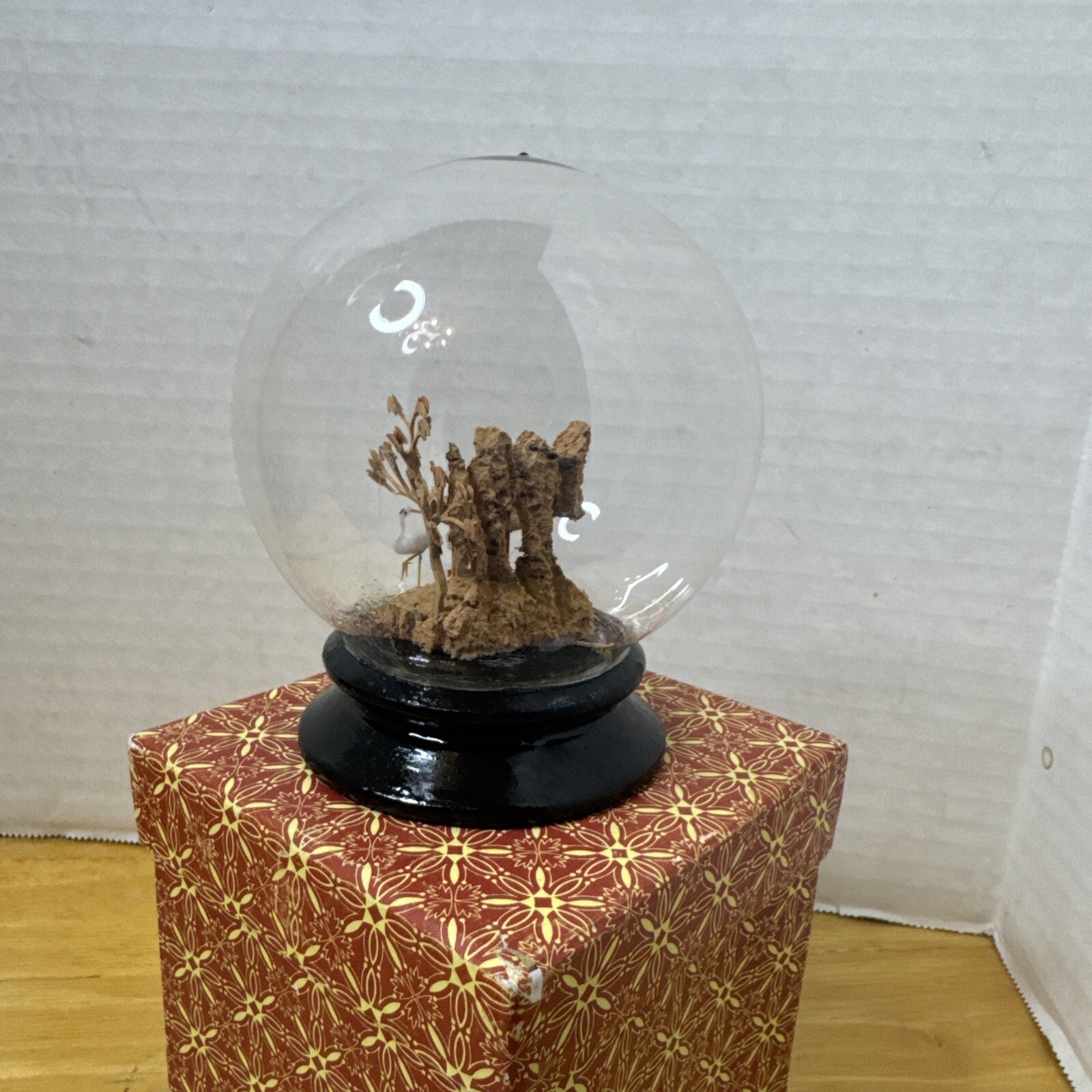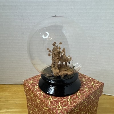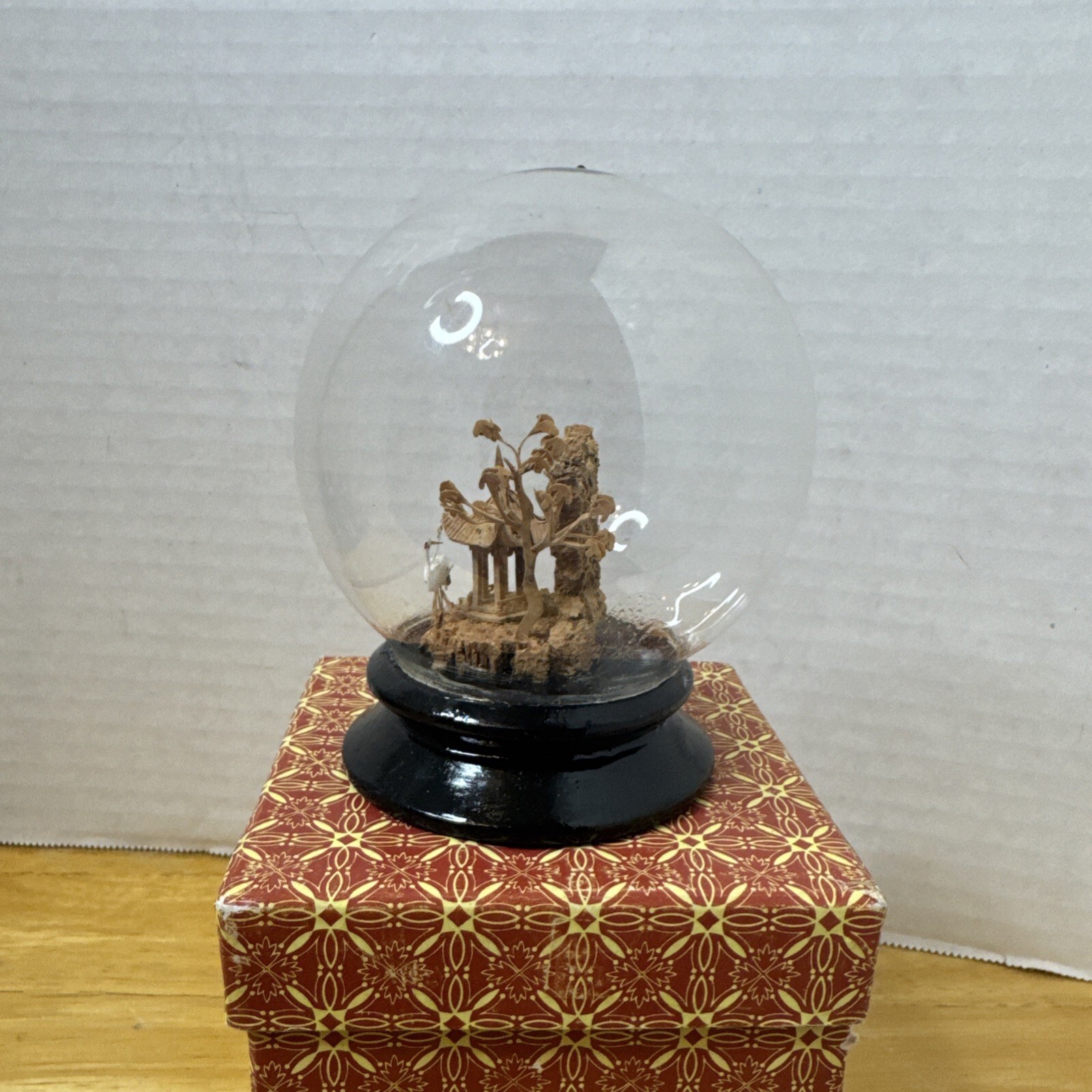Vintage 3.5”Chinese Diorama Cork Carving Trees/Crane Scenic Sculpture Glass Dome