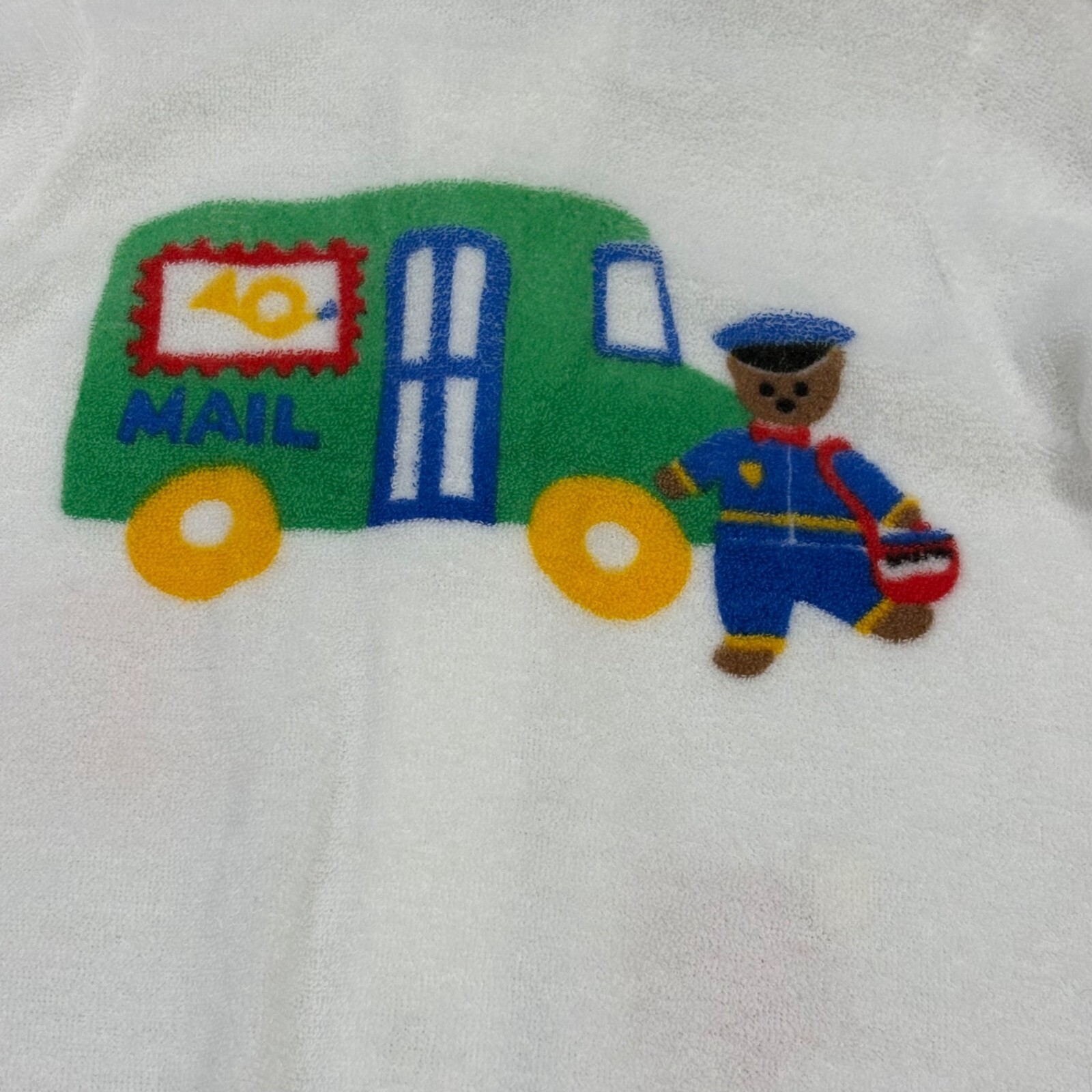 In a charming world where teddy bears deliver mail and puppies guard mailboxes, this vintage sleeper invites your little one to explore an imaginative postal adventure. Made in the U.S.A, its soft terry cloth whispers tales of friendly postmen and whimsical stop signs, ensuring cozy comfort with every wear.
