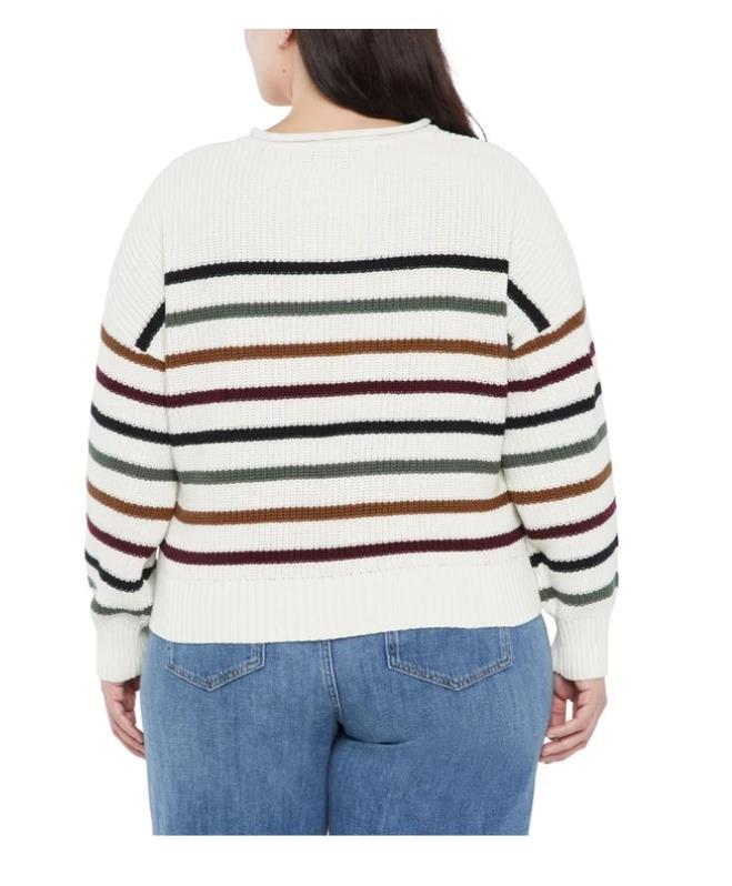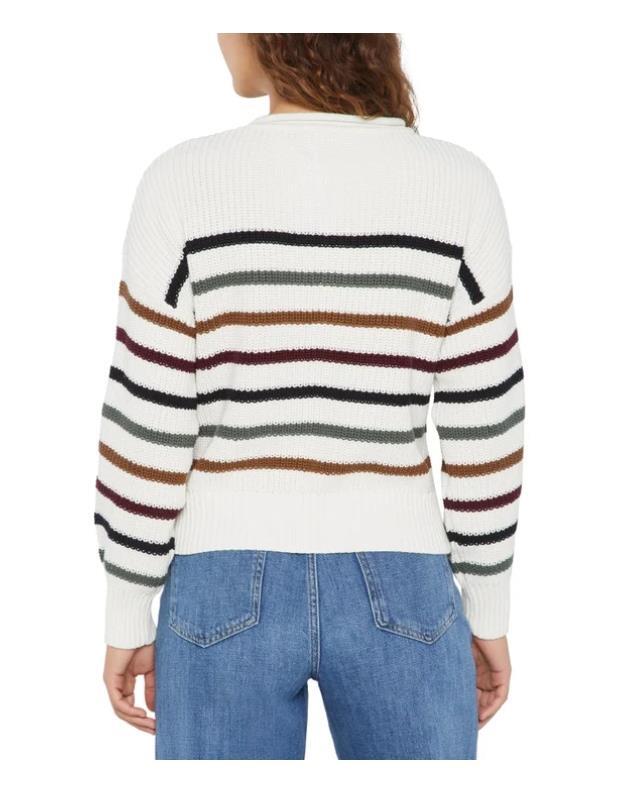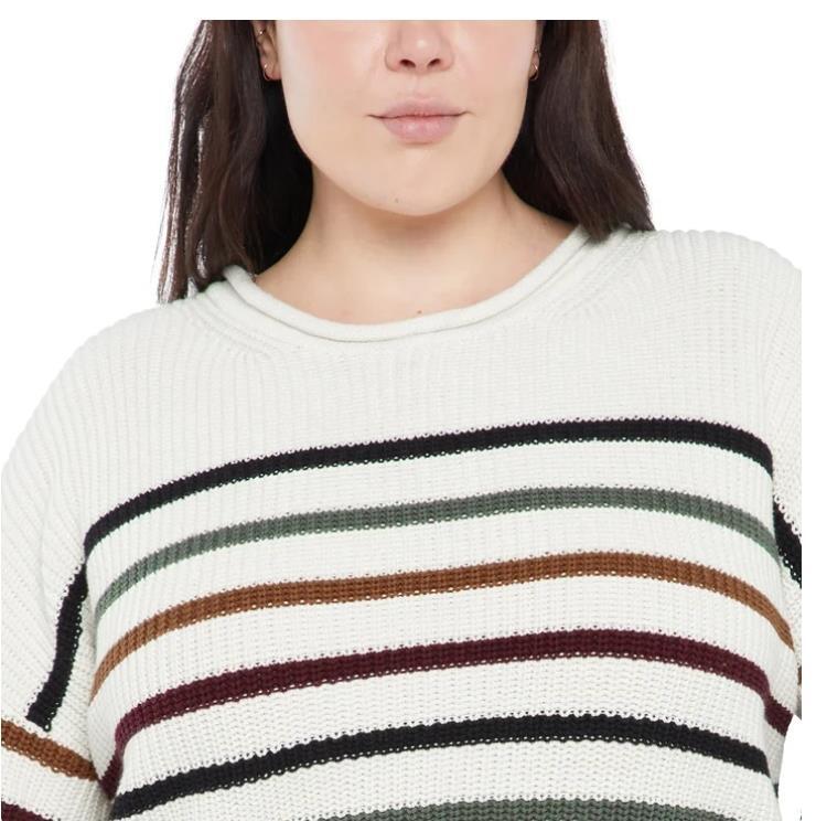 Gap Womens Sweater White Multicolor Striped Crewneck Roll Neck Cotton Soft