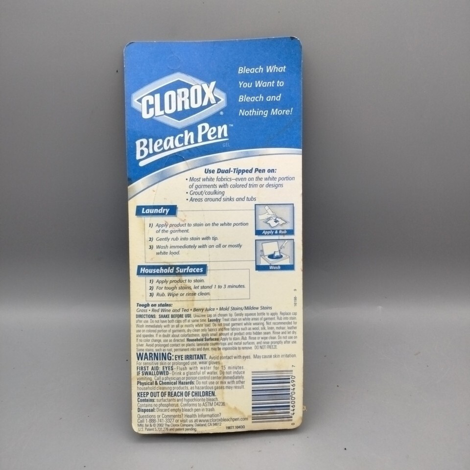 Clorox Bleach Pen Gel Laundry & Household Net Wt. 2.0 Fl Oz 2002 Dual Tipped NEW