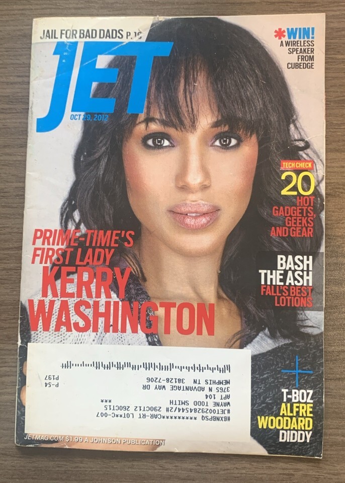 The product is a vintage issue of Jet Magazine from October 29, 2012, featuring actress Kerry Washington on the cover. This magazine provides a glimpse into the entertainment industry and celebrity news from that specific time period, making it a valuable collectible for fans and enthusiasts of vintage magazines. With its focus on African-American culture and current events, Jet Magazine offers a unique and historical perspective on the world of media and entertainment.