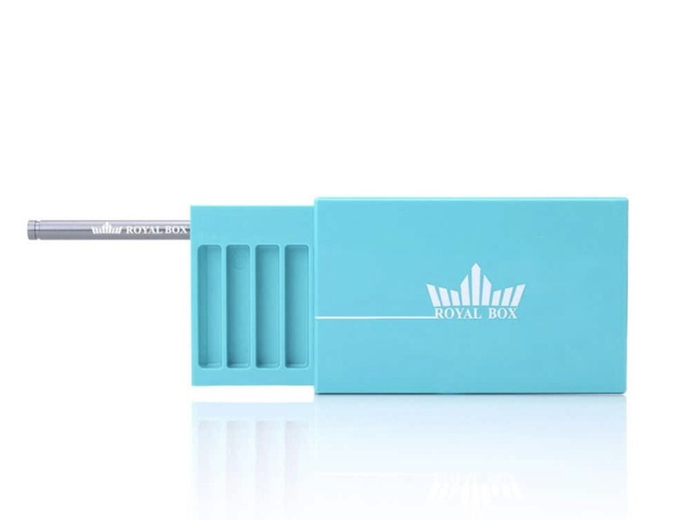 Original Royal Box Blue 8 Slot Snuff Storage Device w/ Built In 3”Metal Straw