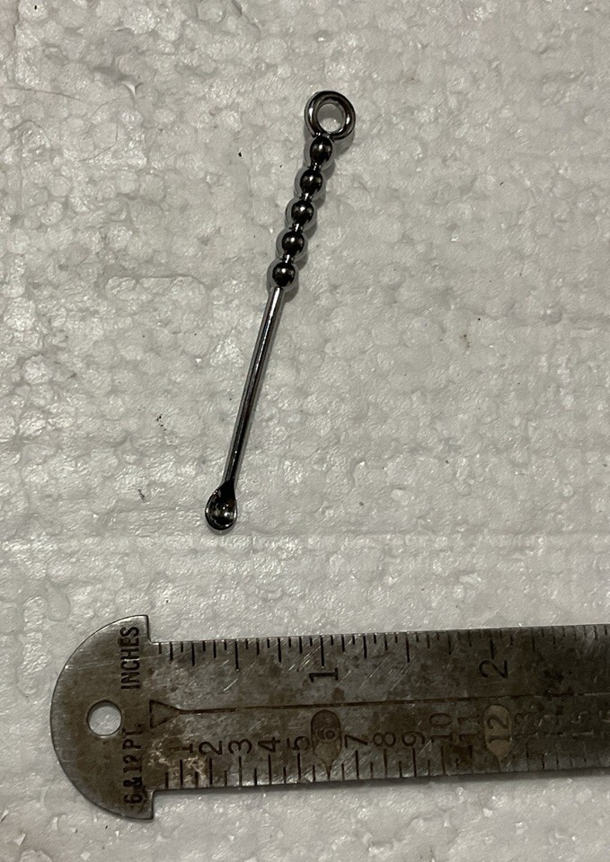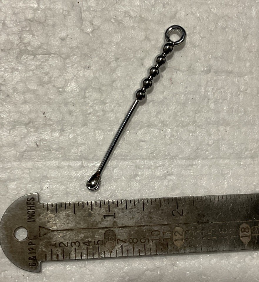 Chrome Modern Ergonomic 5 Ball Handle with the perfect shaped and sized mini spoon for all kinds of intimate uses ! See photos of the rugged well made piece ! Measurements are approximately 3 inches in length ! This is an excellent shaped mini spoon for all kinds of uses ! See photos of the actual item that you will receive !