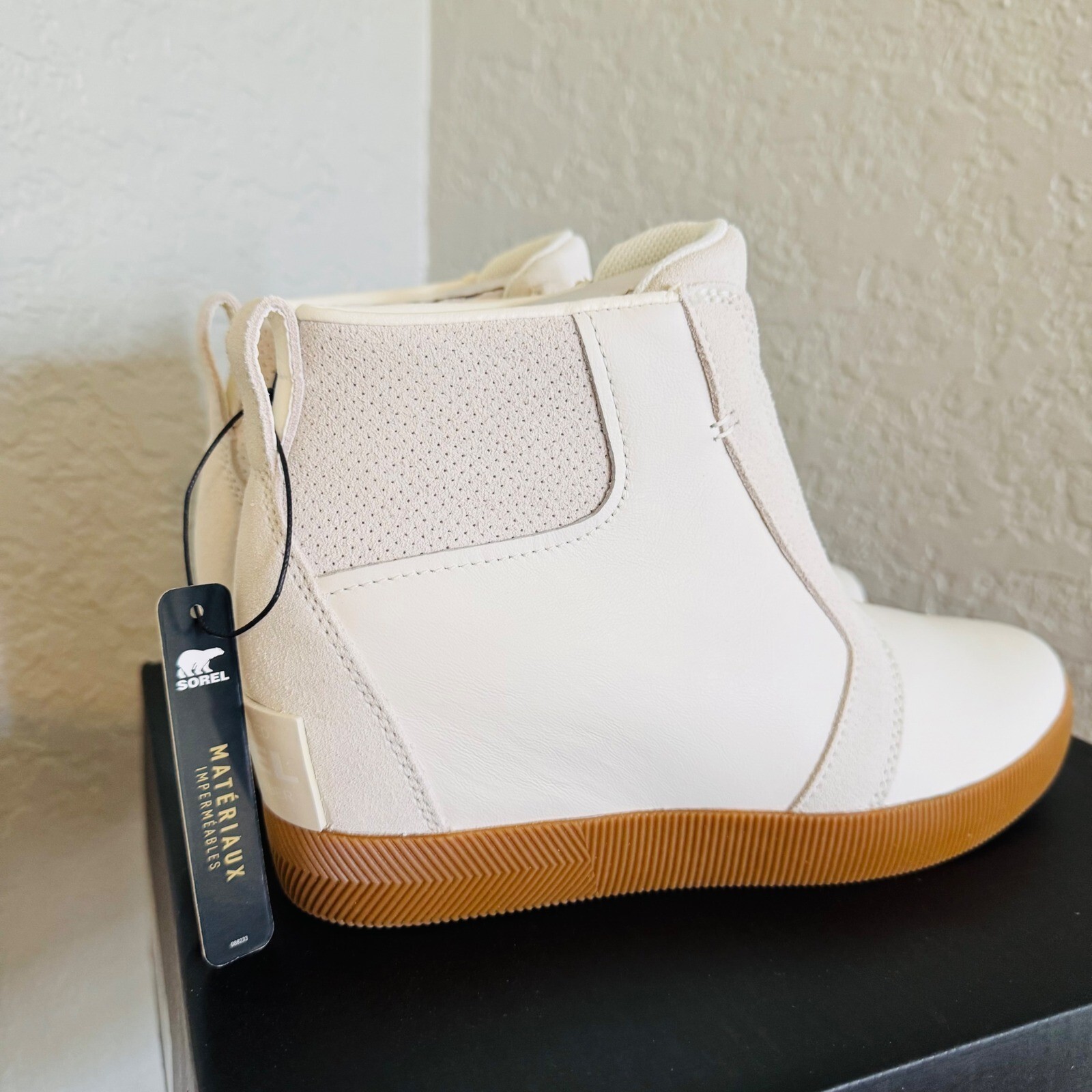 Sorel Out N About Wedge Leather Bootie, Ankle Boots White/Sea Salt, Size 8 NWT