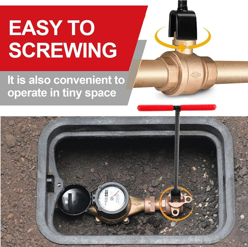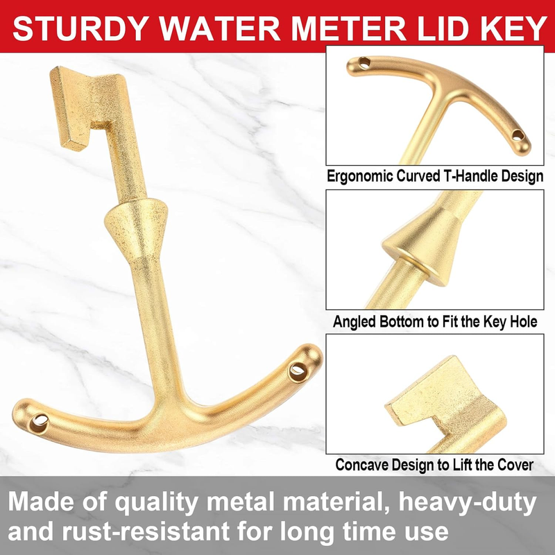 Fit Most Water Meter Valves Both Main and Curb: this water meter key is a handy tool to quickly turn off your water at the curb, especially in emergencies; Unlock access to restricted water supply conveniently; This water main shut-off tool fits most water meter valves and can be used for commercial and domestic purposes; Our water valve shut-off tool key provides convenient access to operate water sources, replacing a handle to prevent theft and vandalism