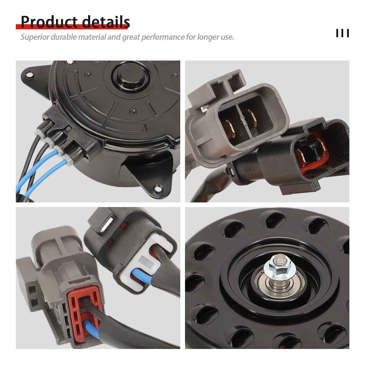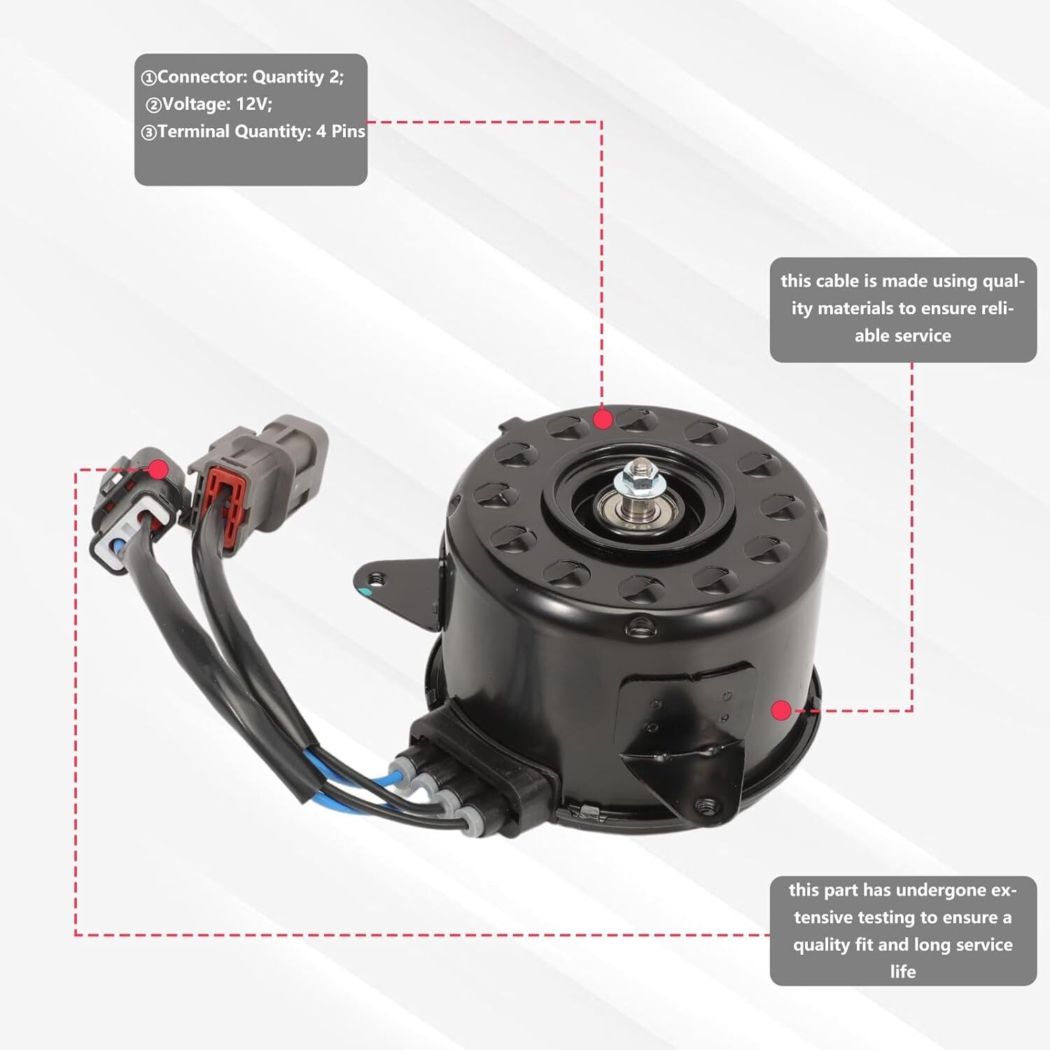 ?Compatibility?: fit for 2012-2019 Versa L4 1.6L Sedan CVT Trans, 2014-2019 Versa Note L4 1.6L Hatchback CVT Trans. ?Packaging List?: 1 x Engine Cooling Fan Motor. ?OE Number?: 21487-1KA0B, 21487-1KA0A, 214871KA0E. ?Durability?: This product is made of high-quality materials for extreme durability and long-lasting performance. It is an affordable alternative and ideal for replacing parts that have been damaged or worn due to age. ?NOTE?: Before purchasing, please check whether your car model and original part number are consistent with our products. If you have any questions, we will provide you with services at any time!