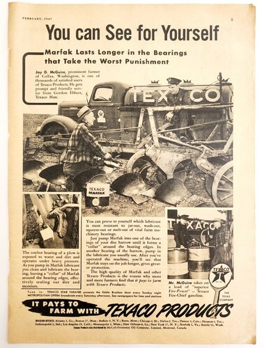 1947 Texaco Marfak Lubricant Advertisement Gas & Oil Agriculture Farming DWNN21