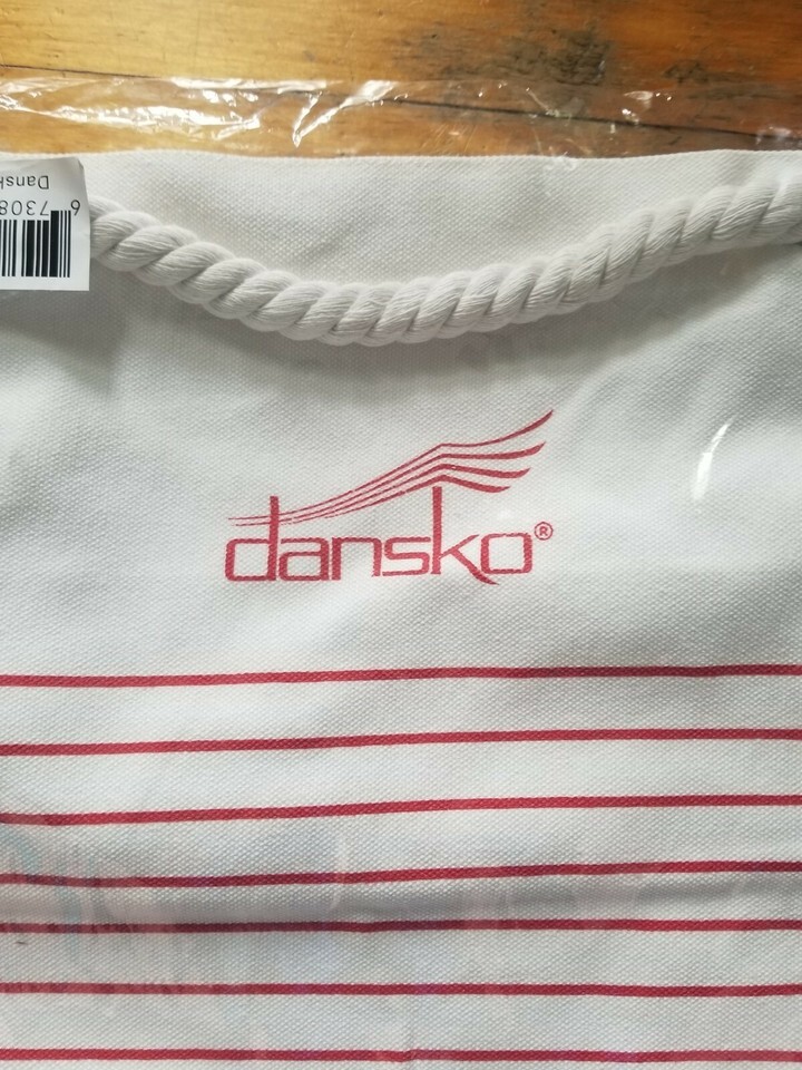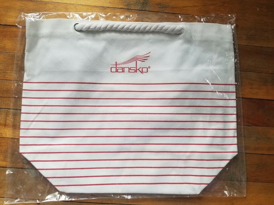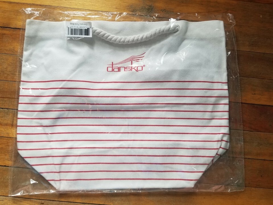 Dansko Canvas Tote Bag Purse White Red Stripe Rope Handle 19x15 New.