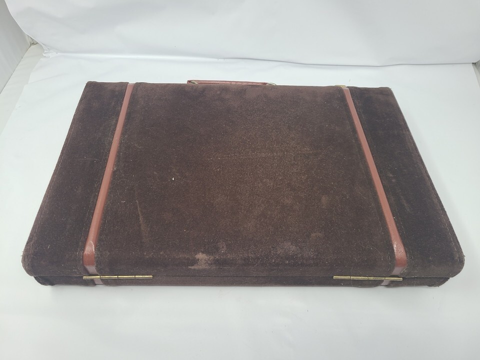 Vintage Backgammon Set ARIES of Beverly Hills Brown Soft Felted Travel Case READ