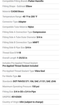 2-Brass DOT Air Brake Fitting 3/4" OD and 48 similar items