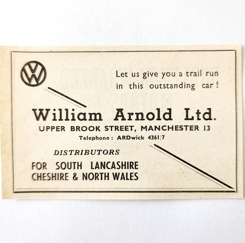1954 Volkswagen William Arnold LTD Advertisement Import Automobilia E89F1