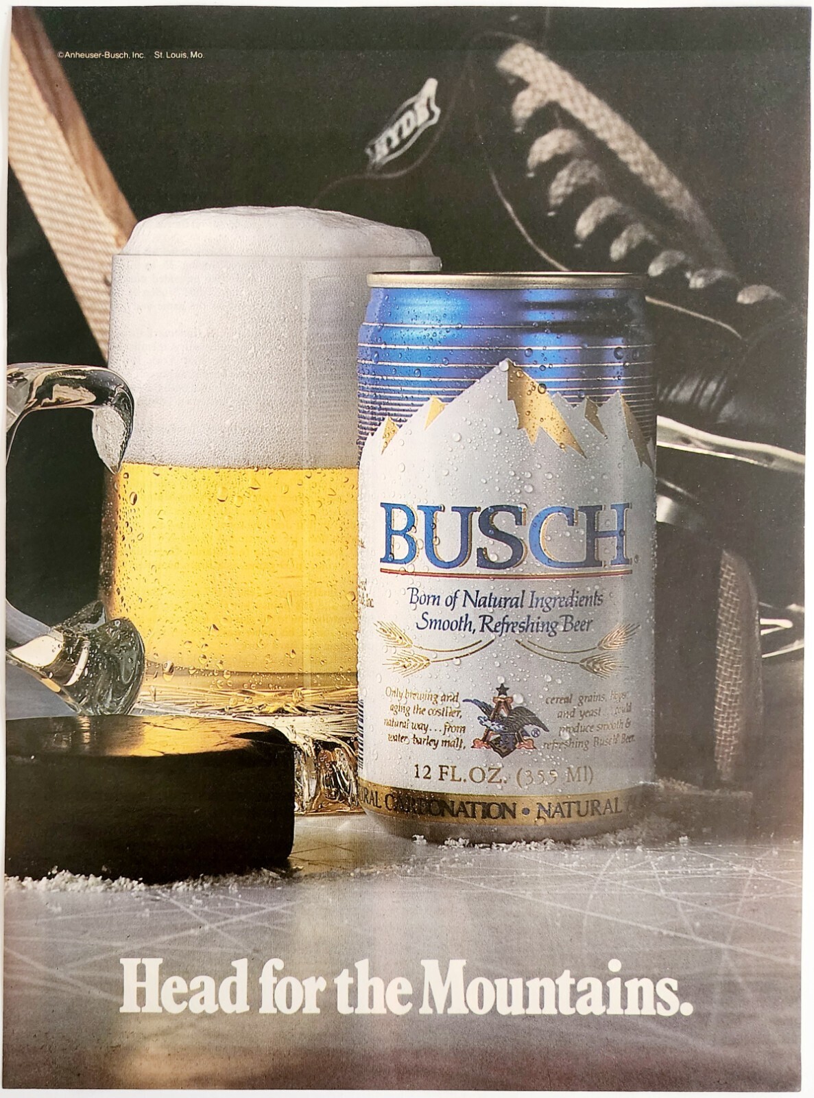 1986 Busch Beer Hockey Advertisement Brewery Vintage Head For The Mountain DWF24