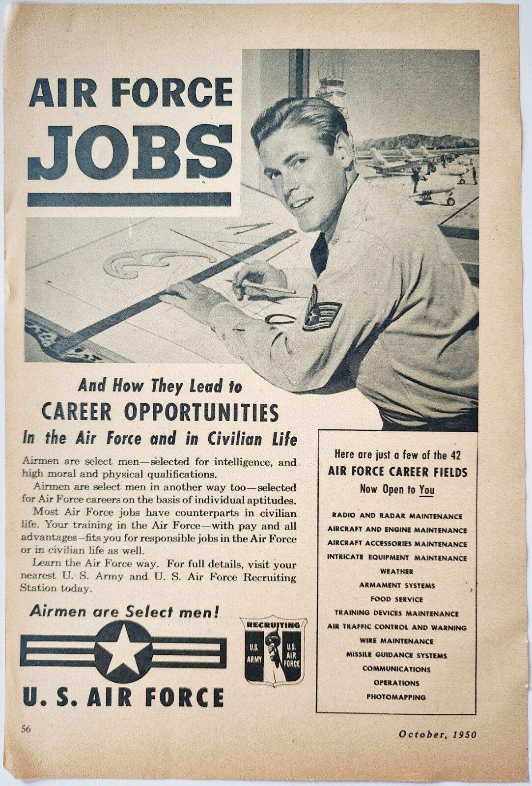 1950 United States Air Force Jobs Advertisement Vintage Military Aviation DWF17