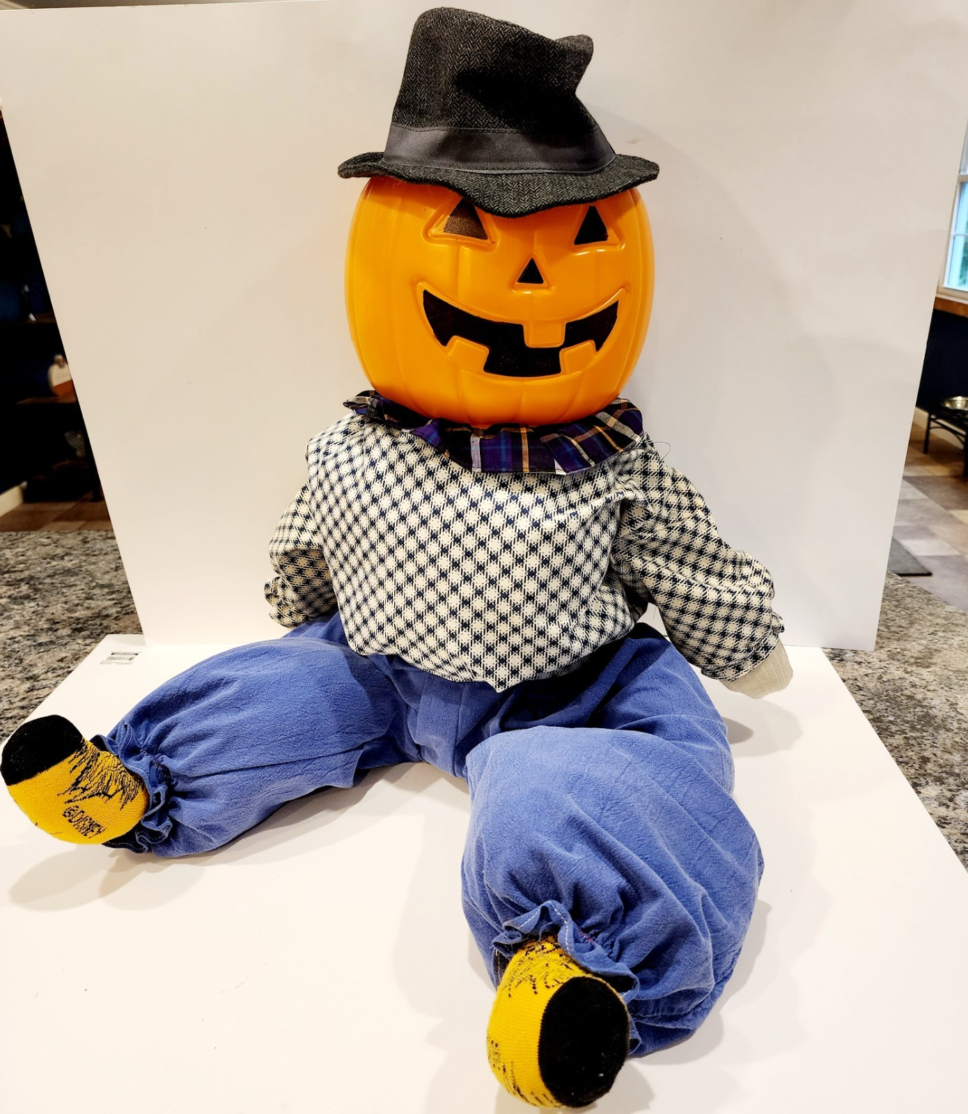 Halloween Pumpkin Head Doll XL Handmade Maine Holiday Decoration 32" Tall