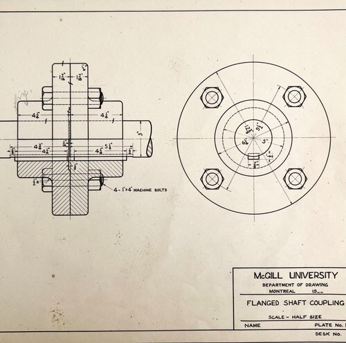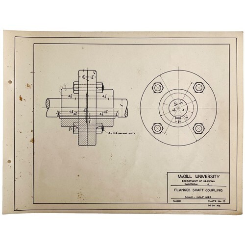 McGill University Flanged Shaft 1965 Mechanical Drawing Print Engineering DWEE12