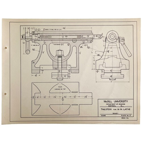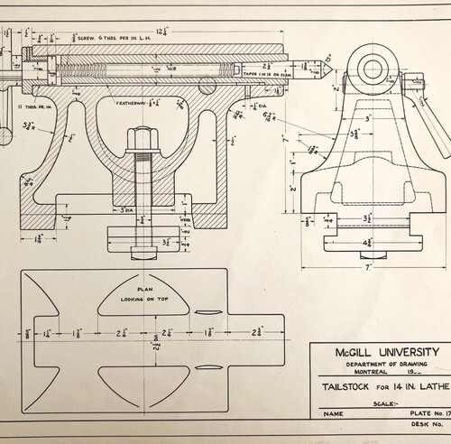 McGill University Lathe Tailstock 1965 Mechanical Drawing Print Engineer DWEE12
