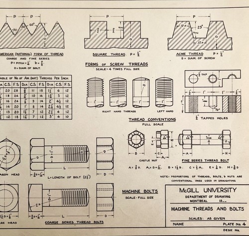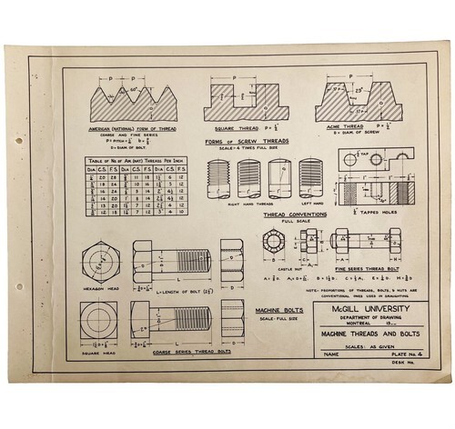 McGill University Machine Threads 1965 Mechanical Drawing Print DWEE12