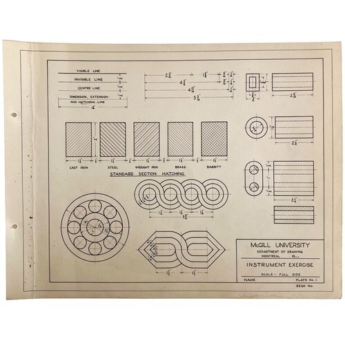 McGill University Instrument Exercise 1965 Mechanical Drawing Print DWEE12