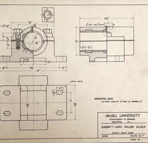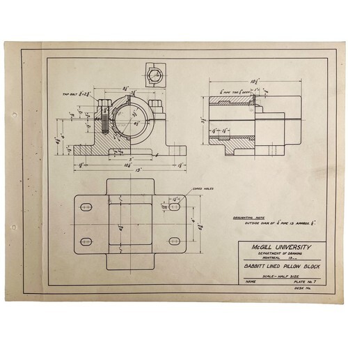 McGill University Babbitt Lined Pillow Blk 1965 Mechanical Drawing Print DWEE12