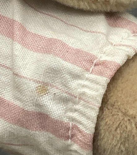 Lightly used with no flaws to mention except a small spot on his sleeve (see photo)
